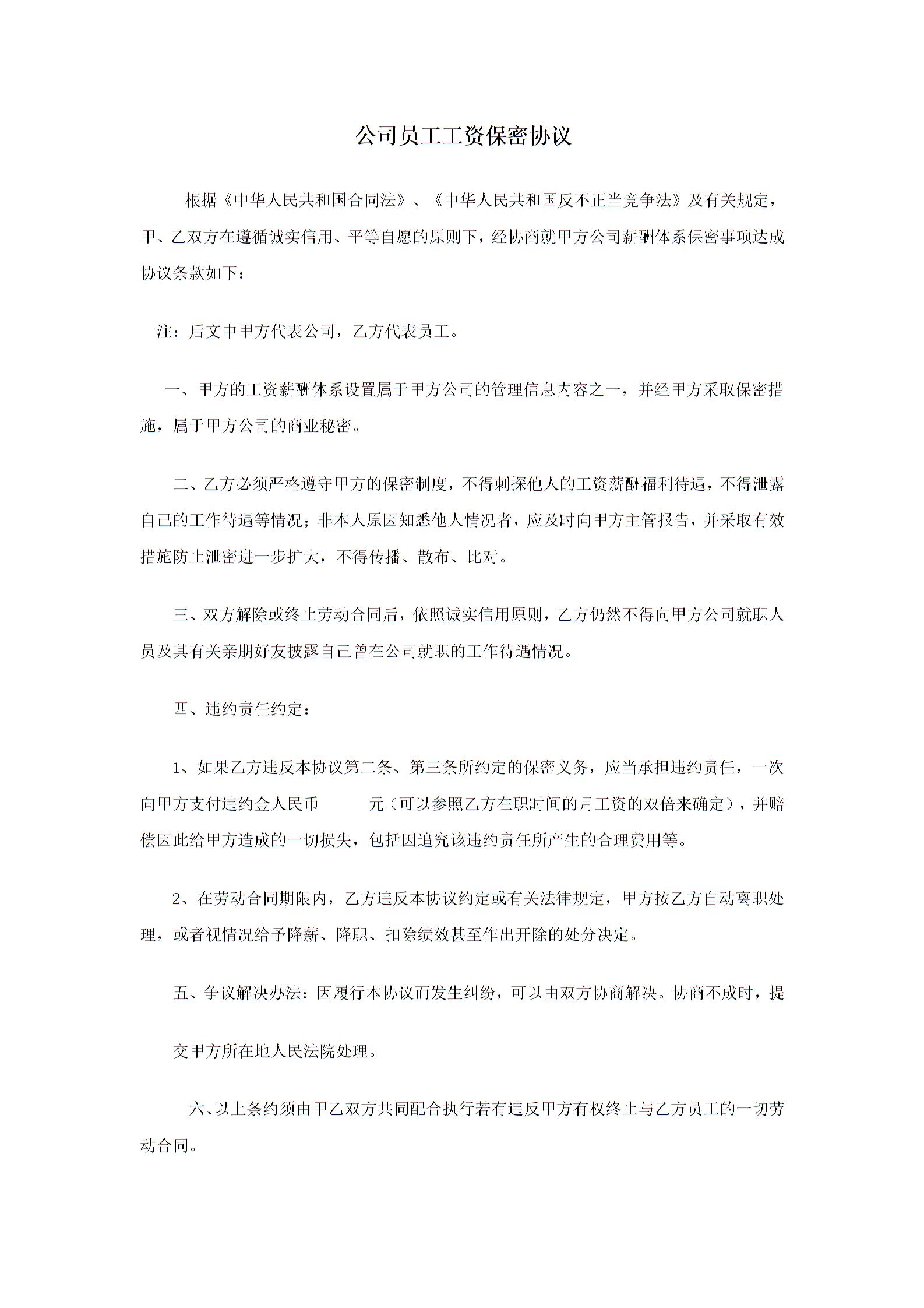 薪资保密协议书
