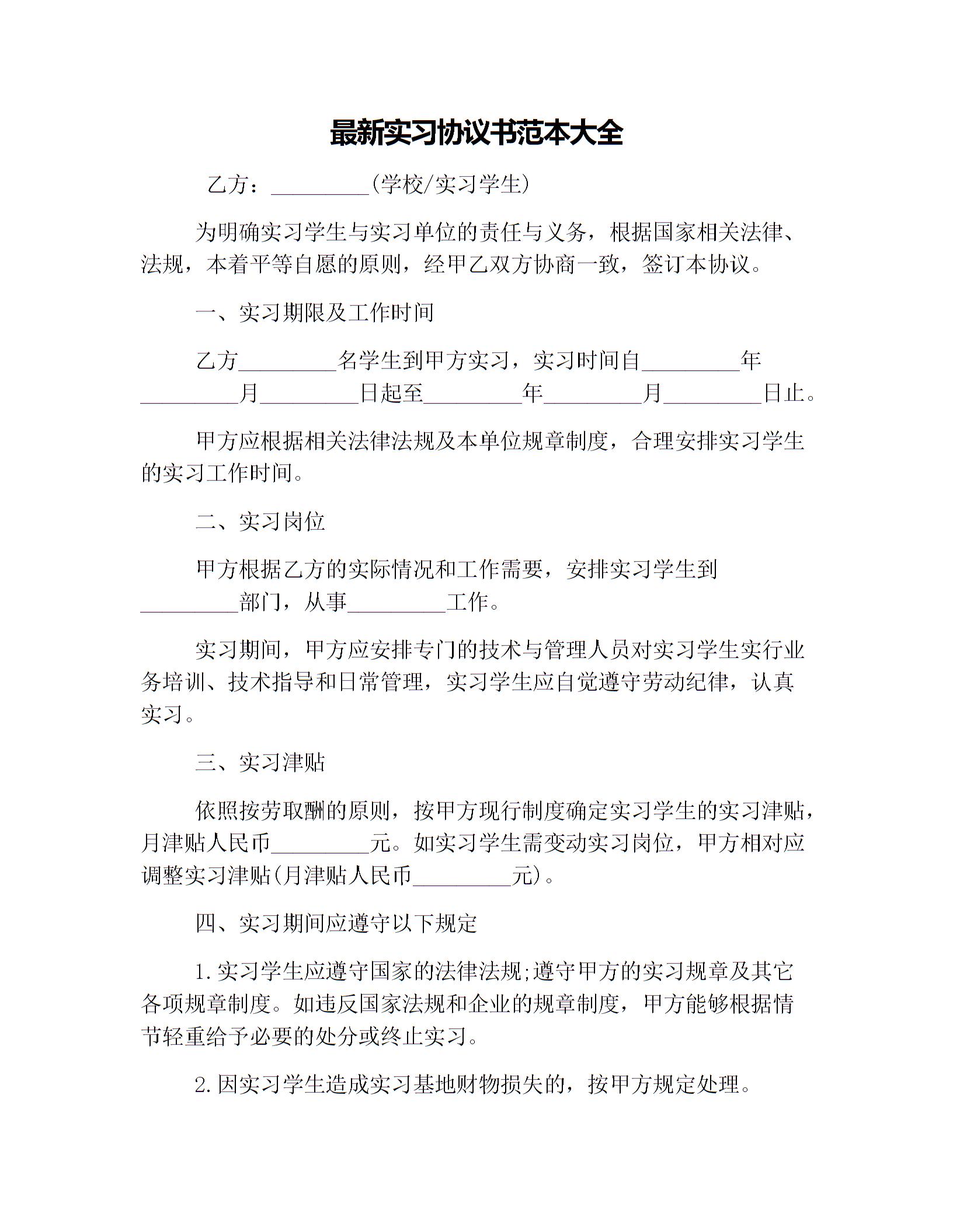 最新实习协议书范本大全