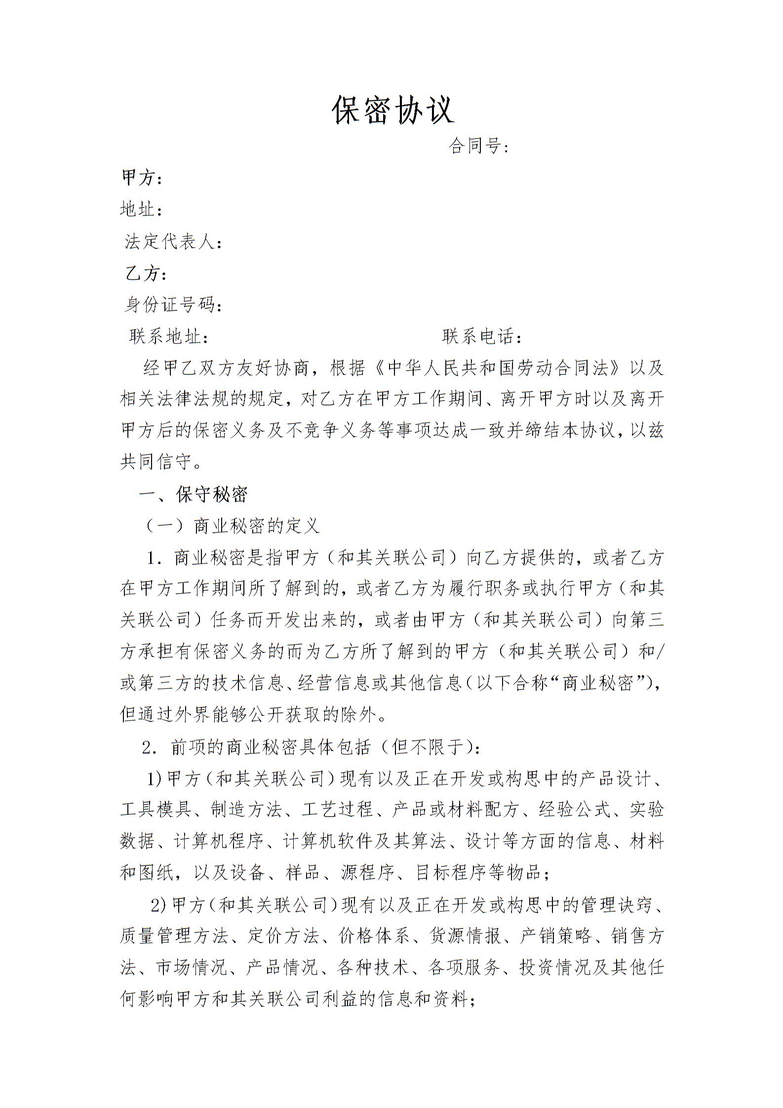 竞业禁止及保密协议