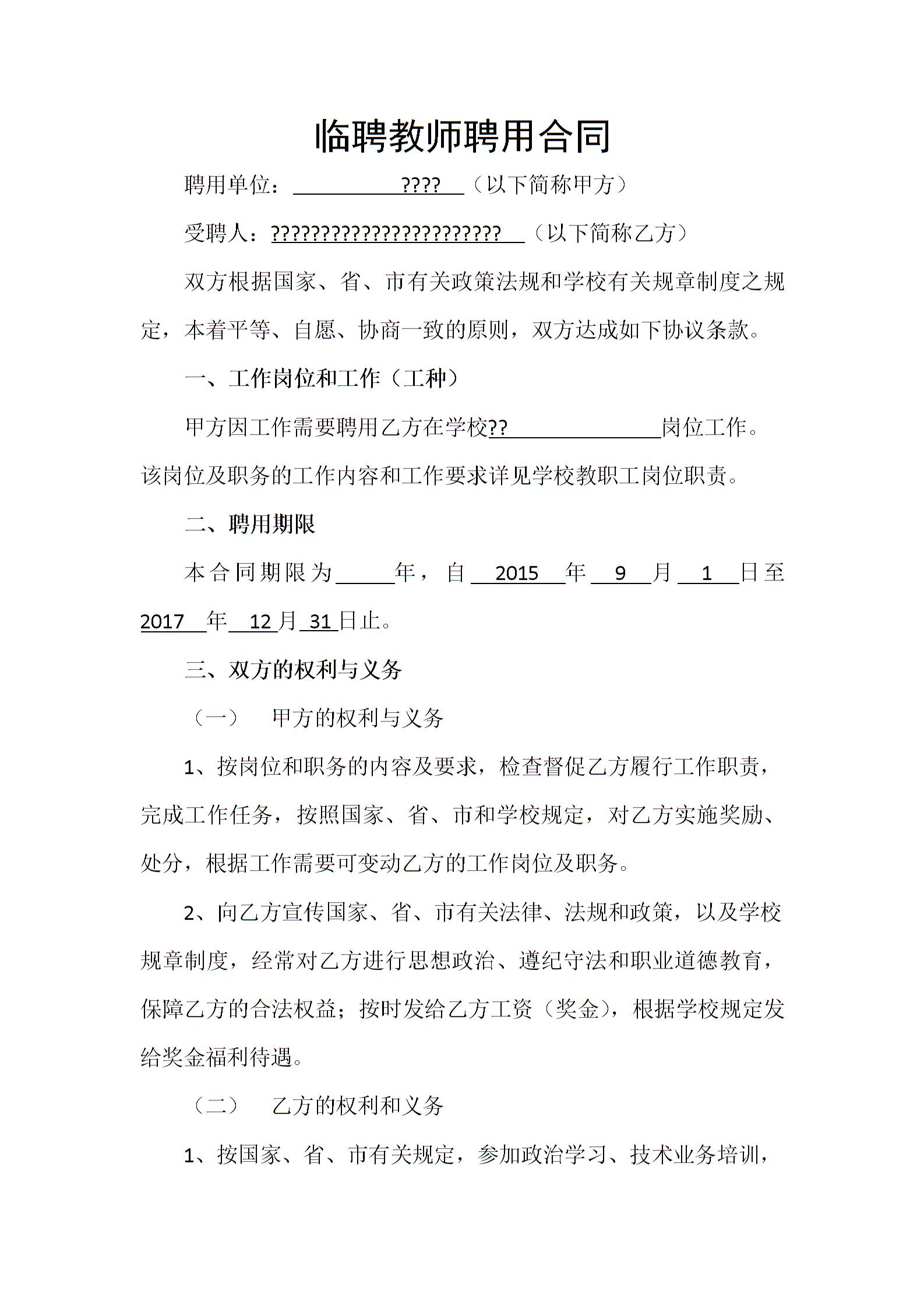 临聘教师聘用合同