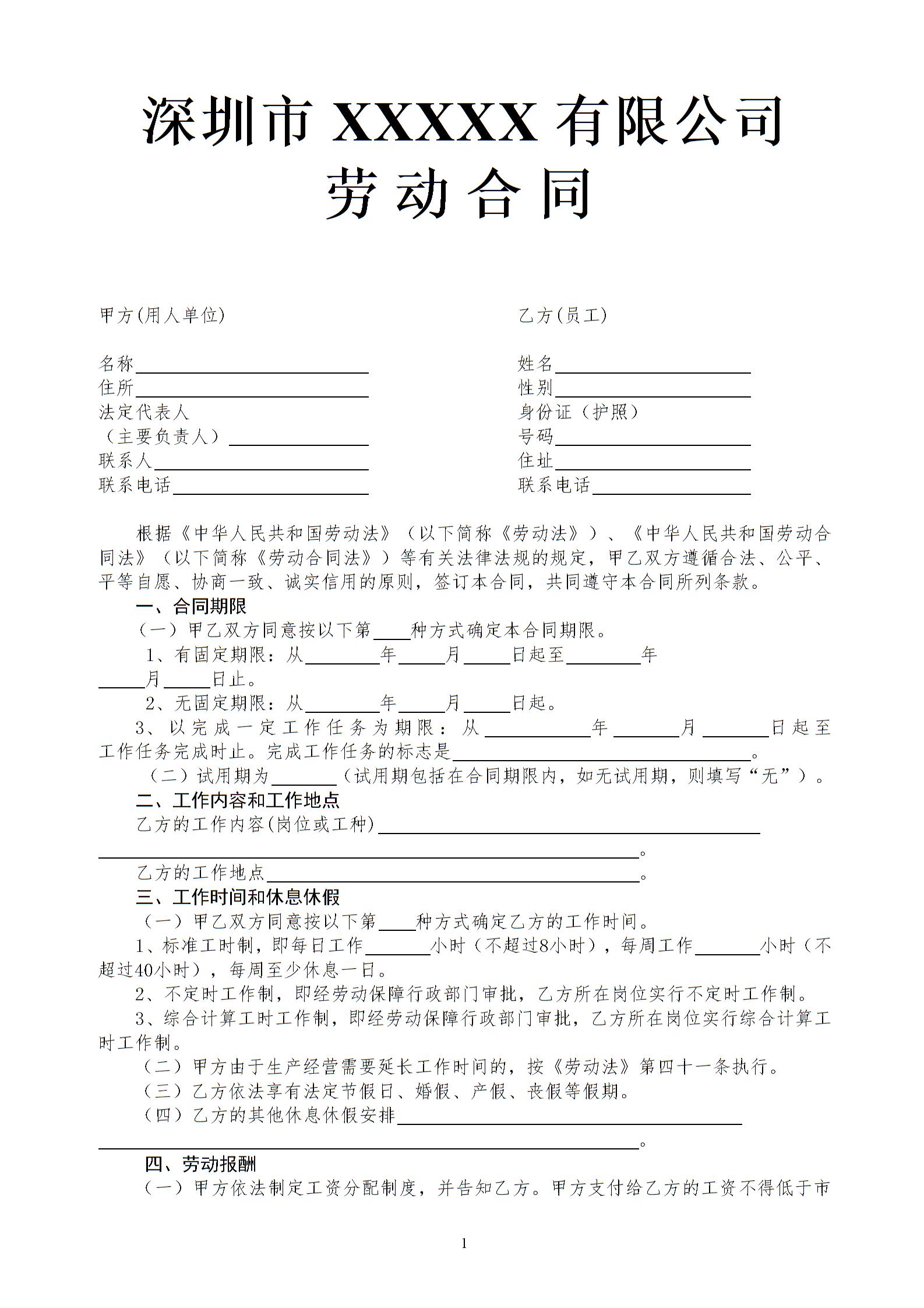 【2017年最新合同模板】福建省劳动合同书范本_格式_样本_样式_协议