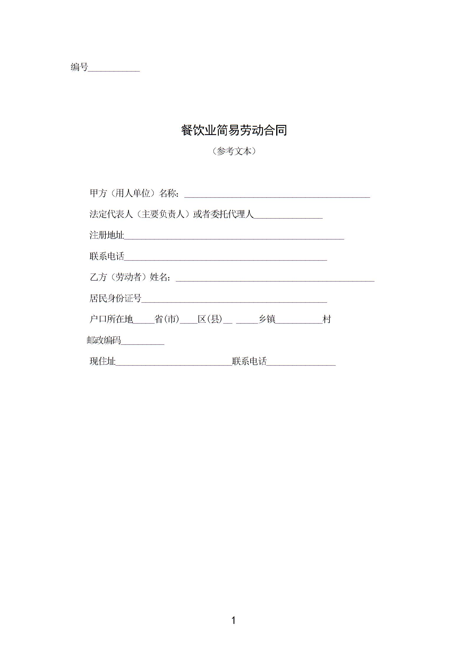餐饮业劳动合同范本