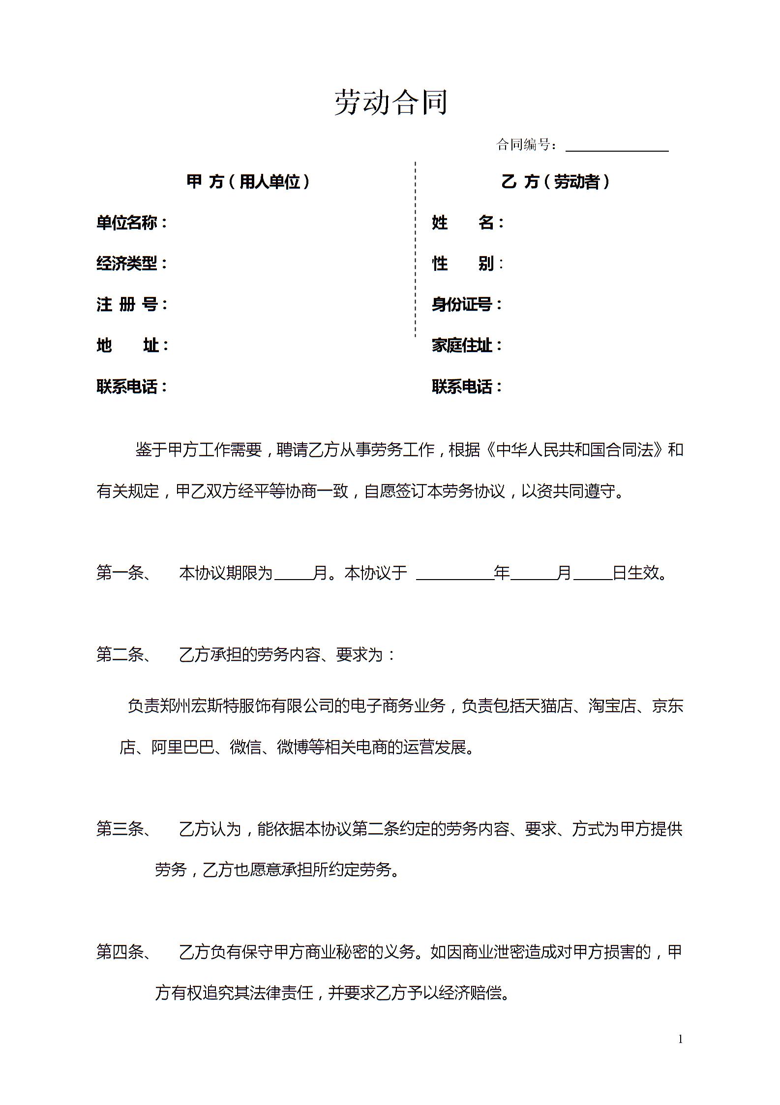 【2017年最新合同模板】福建省劳动合同书范本_格式_样本_样式_协议