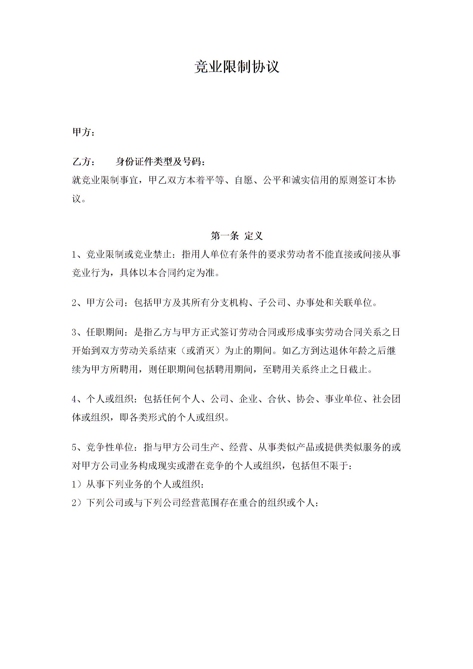 竞业限制协议(竞业禁止)