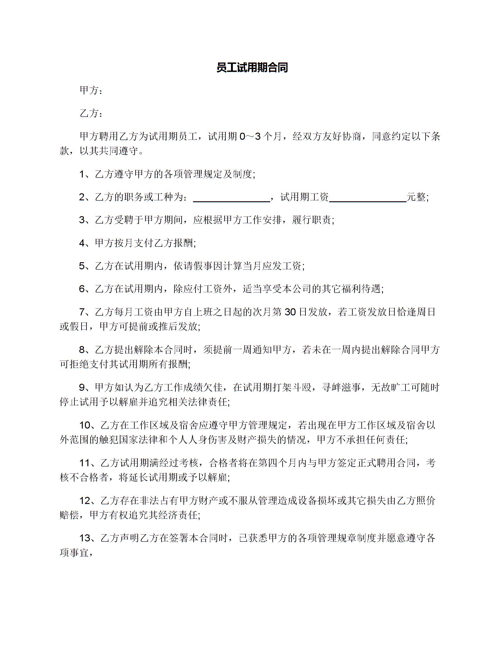员工试用期合同