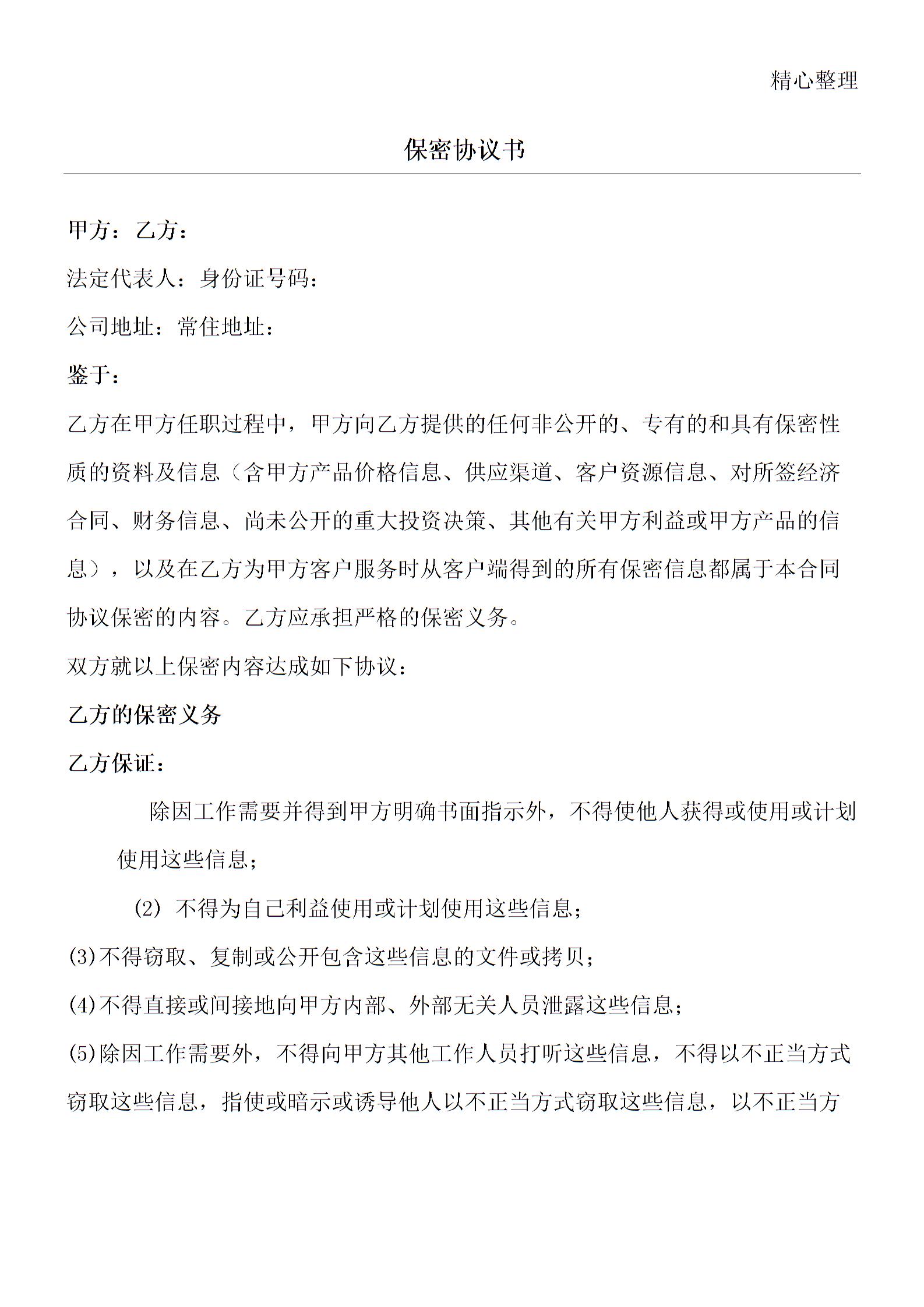 房地产中介保密协议