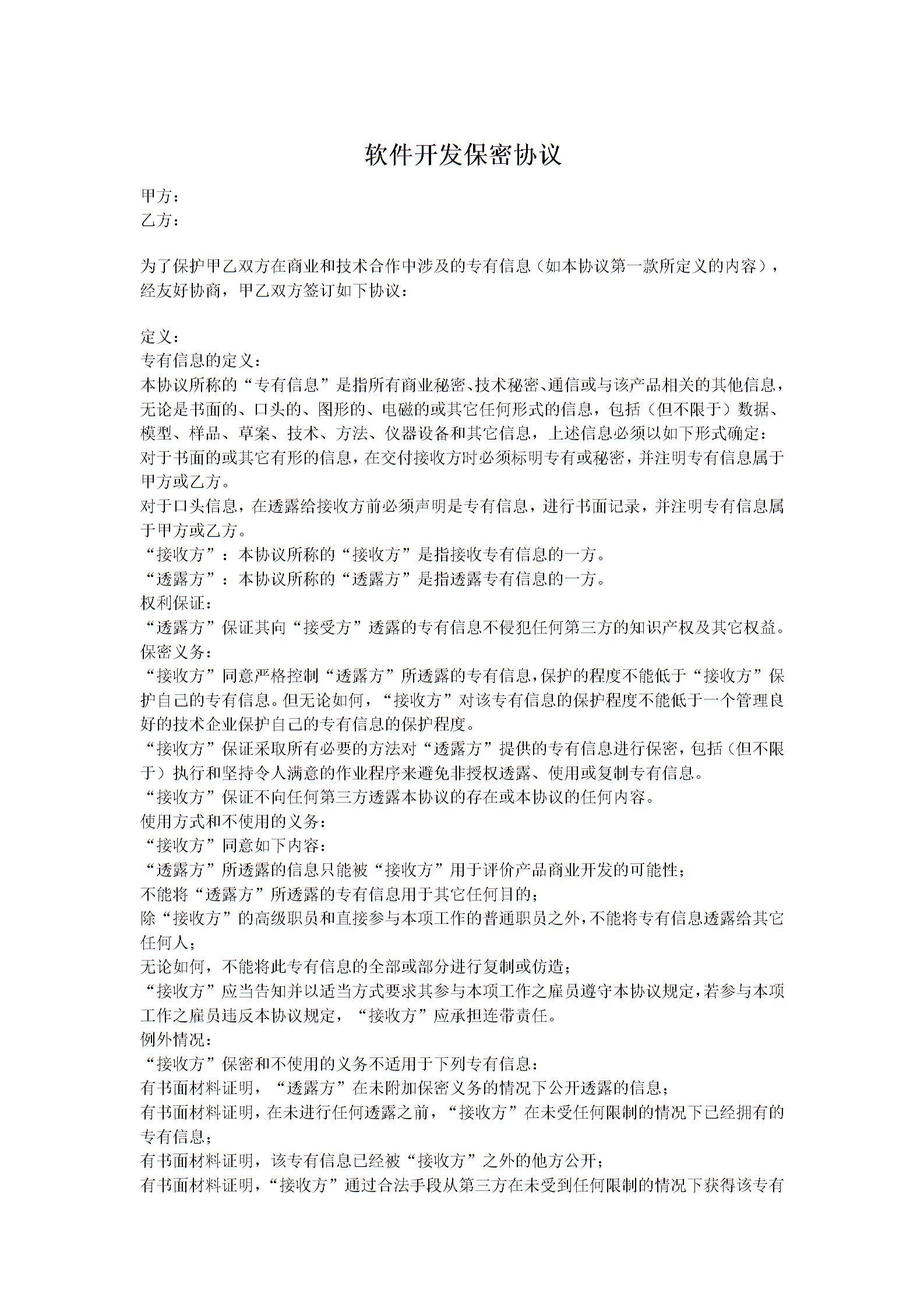 软件开发保密协议