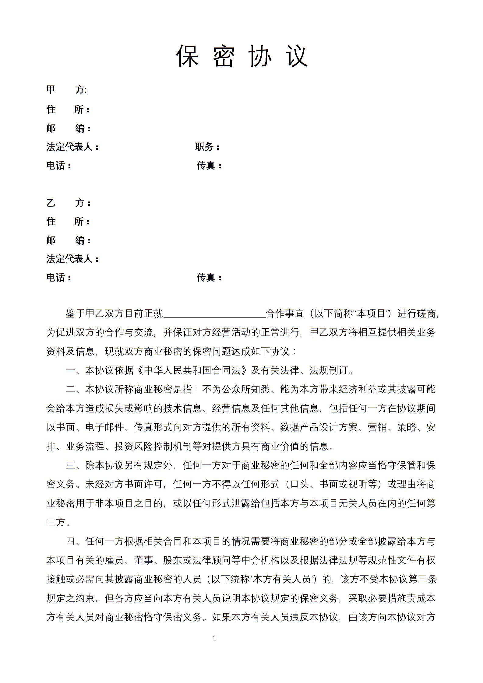 房地产中介保密协议