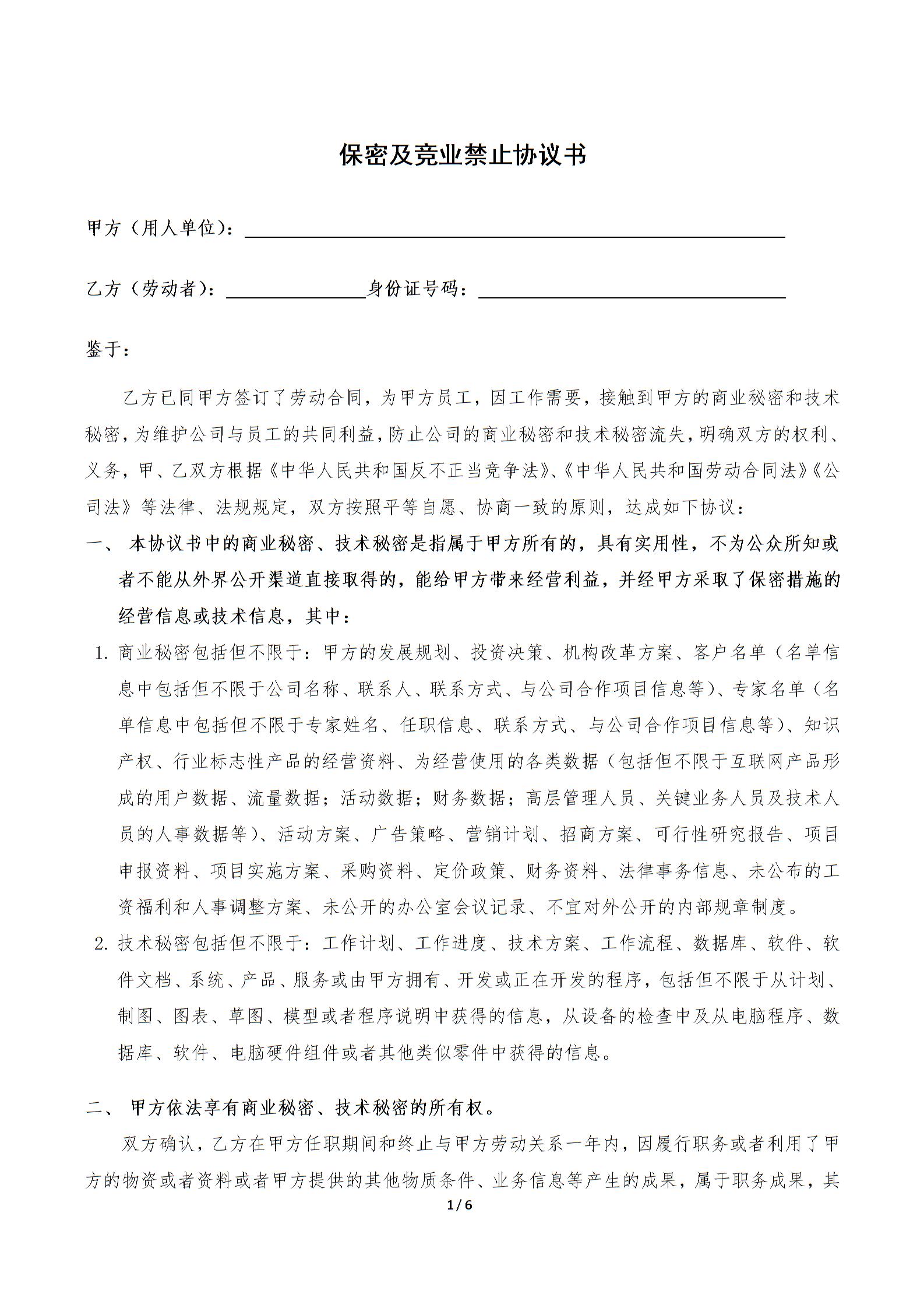 竞业禁止及保密协议