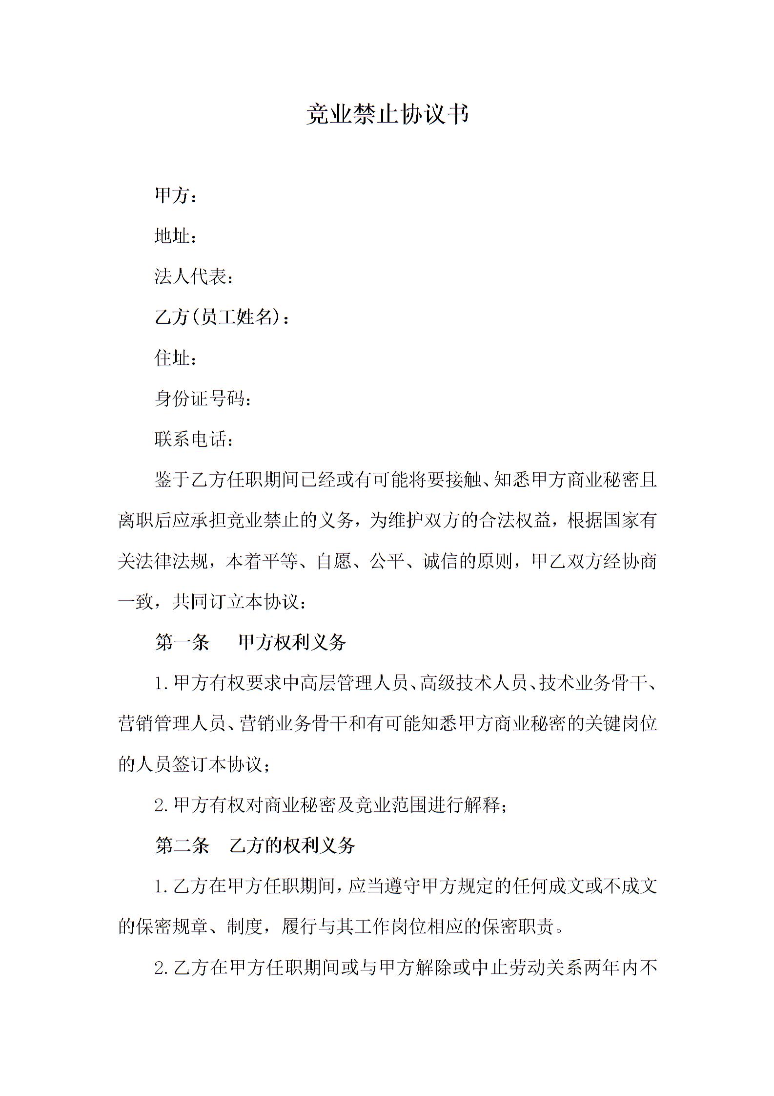 竞业禁止协议书范本