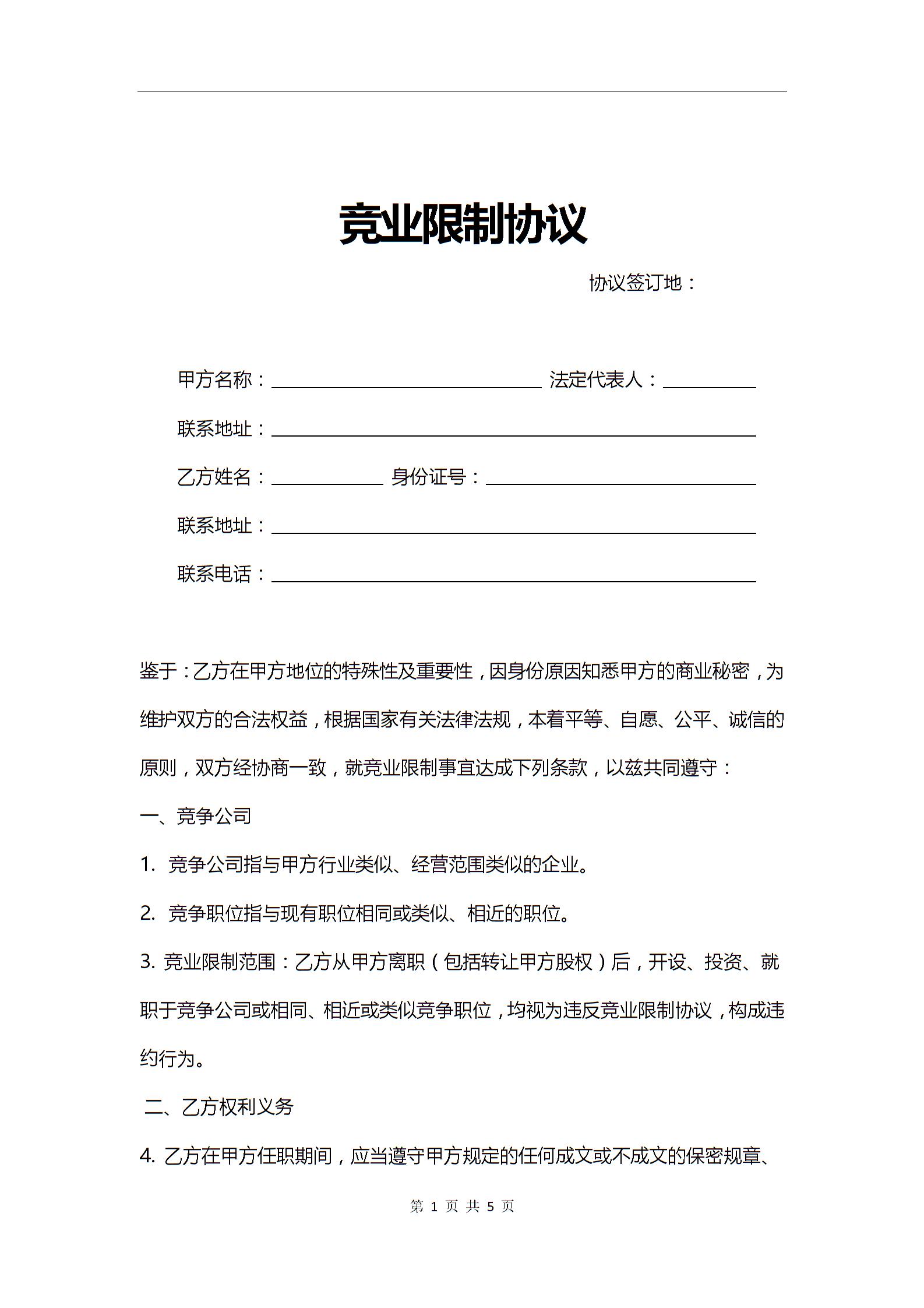 竞业禁止协议书