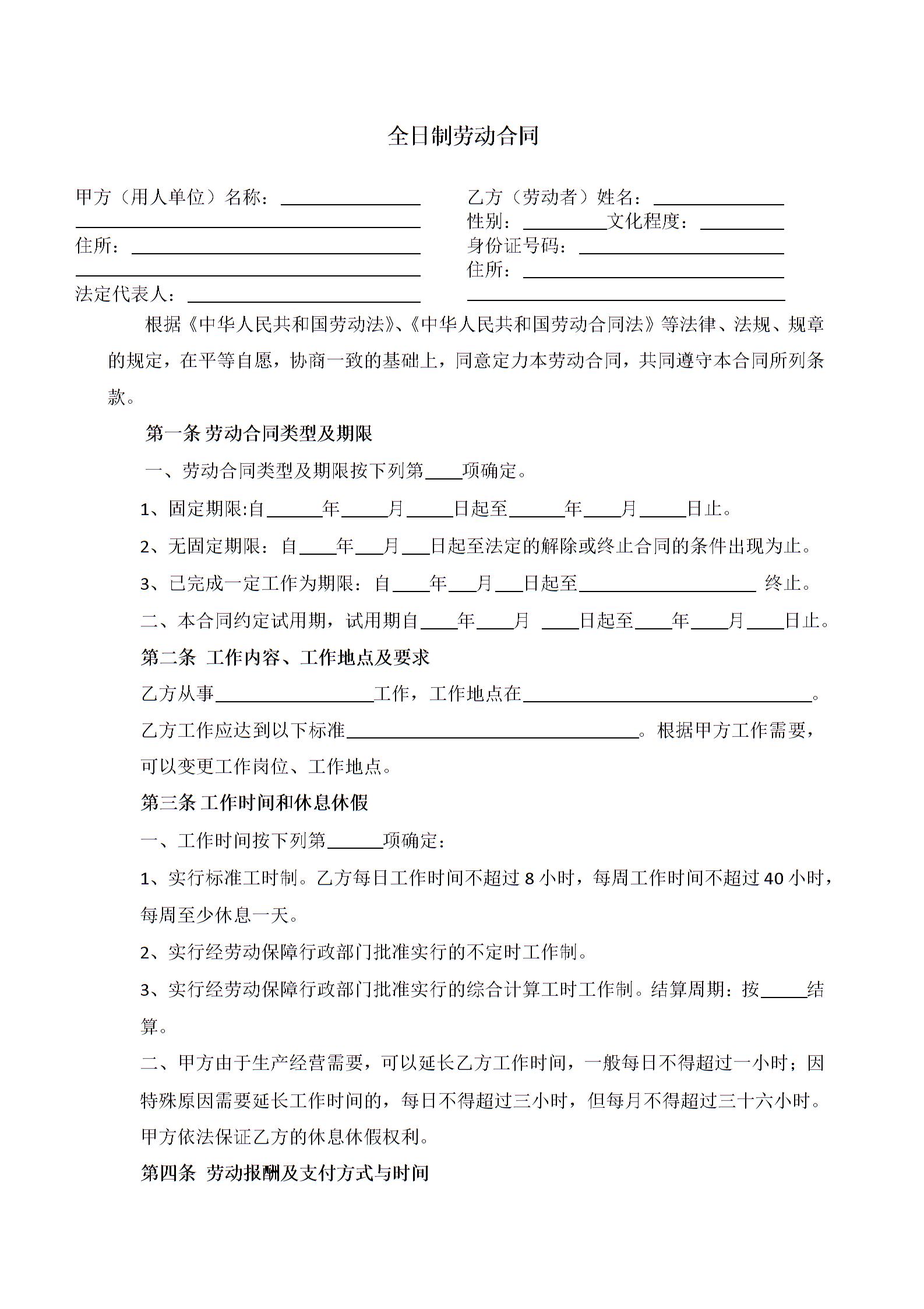 【2017年最新合同模板】福建省劳动合同书范本_格式_样本_样式_协议