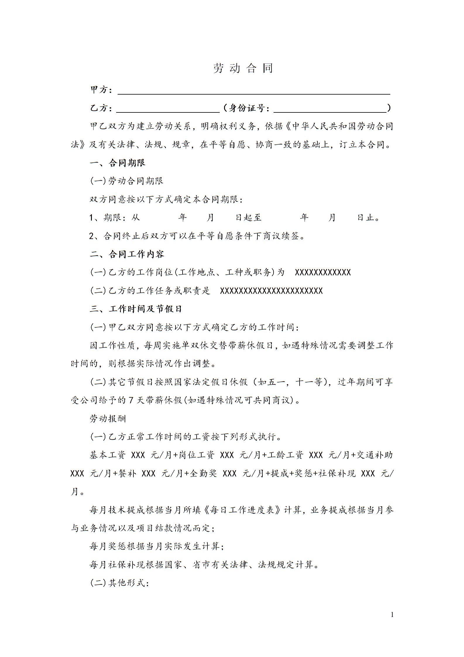 【2017年最新合同模板】福建省劳动合同书范本_格式_样本_样式_协议
