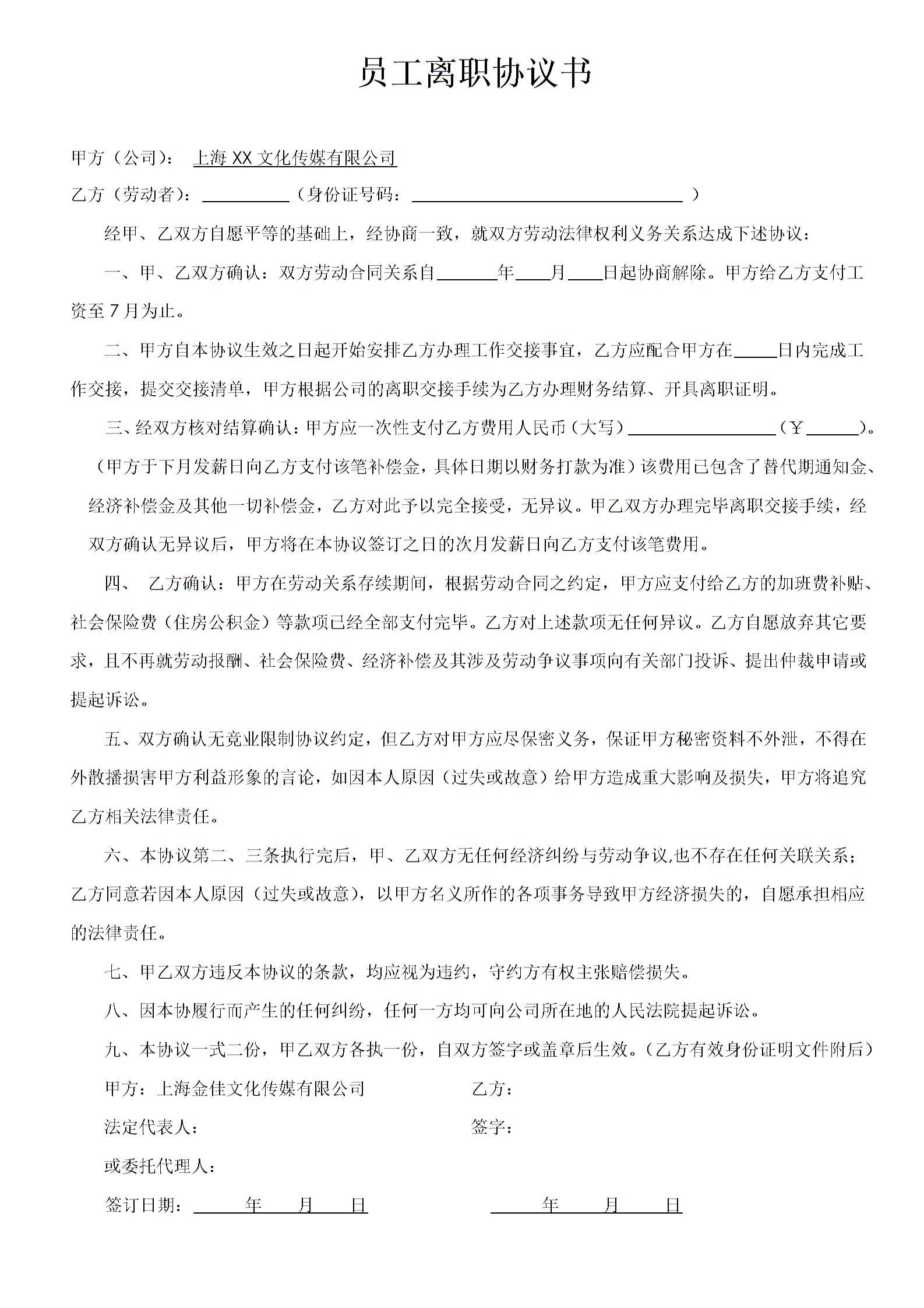 员工离职协议书
