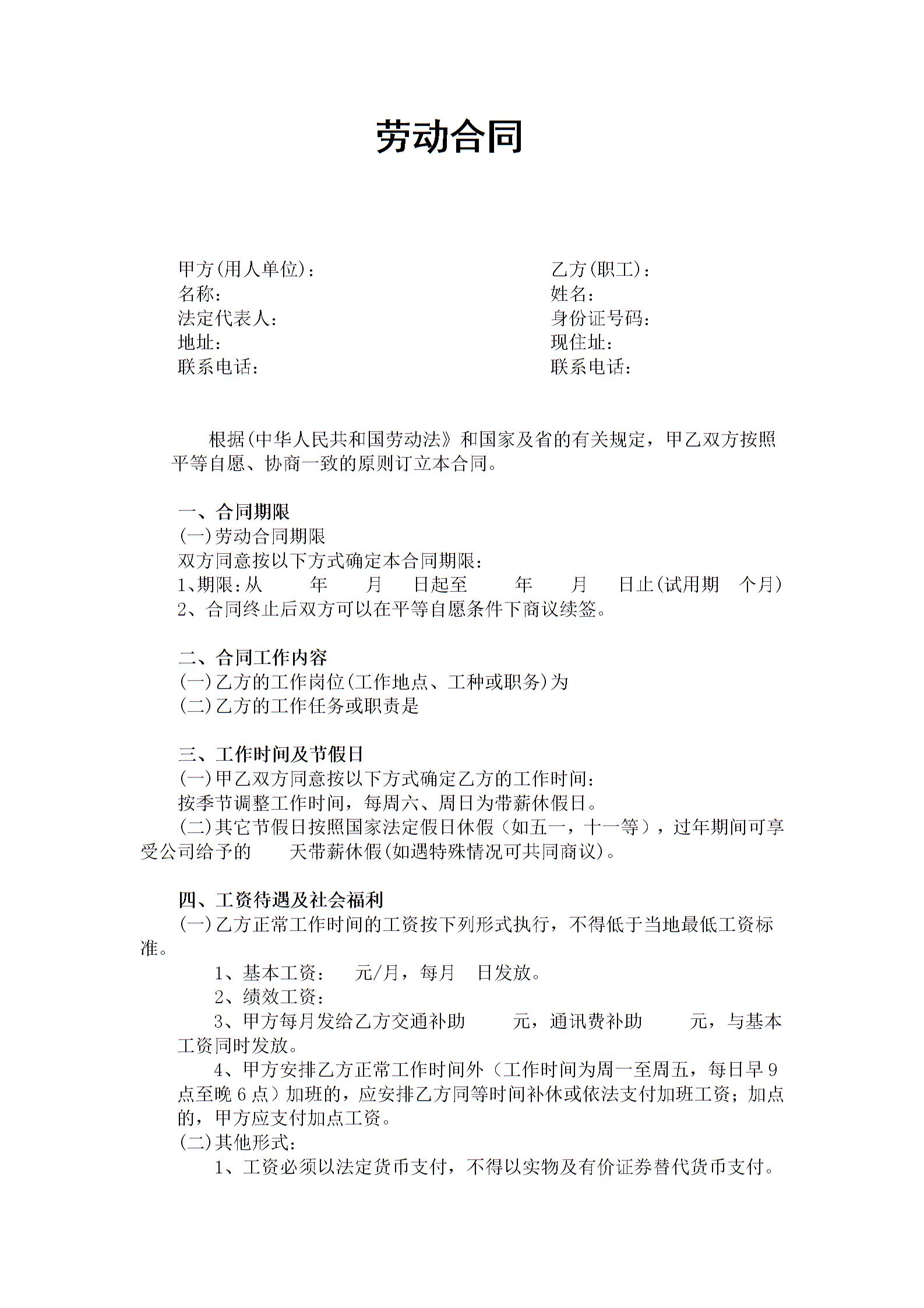 【2017年最新合同模板】福建省劳动合同书范本_格式_样本_样式_协议