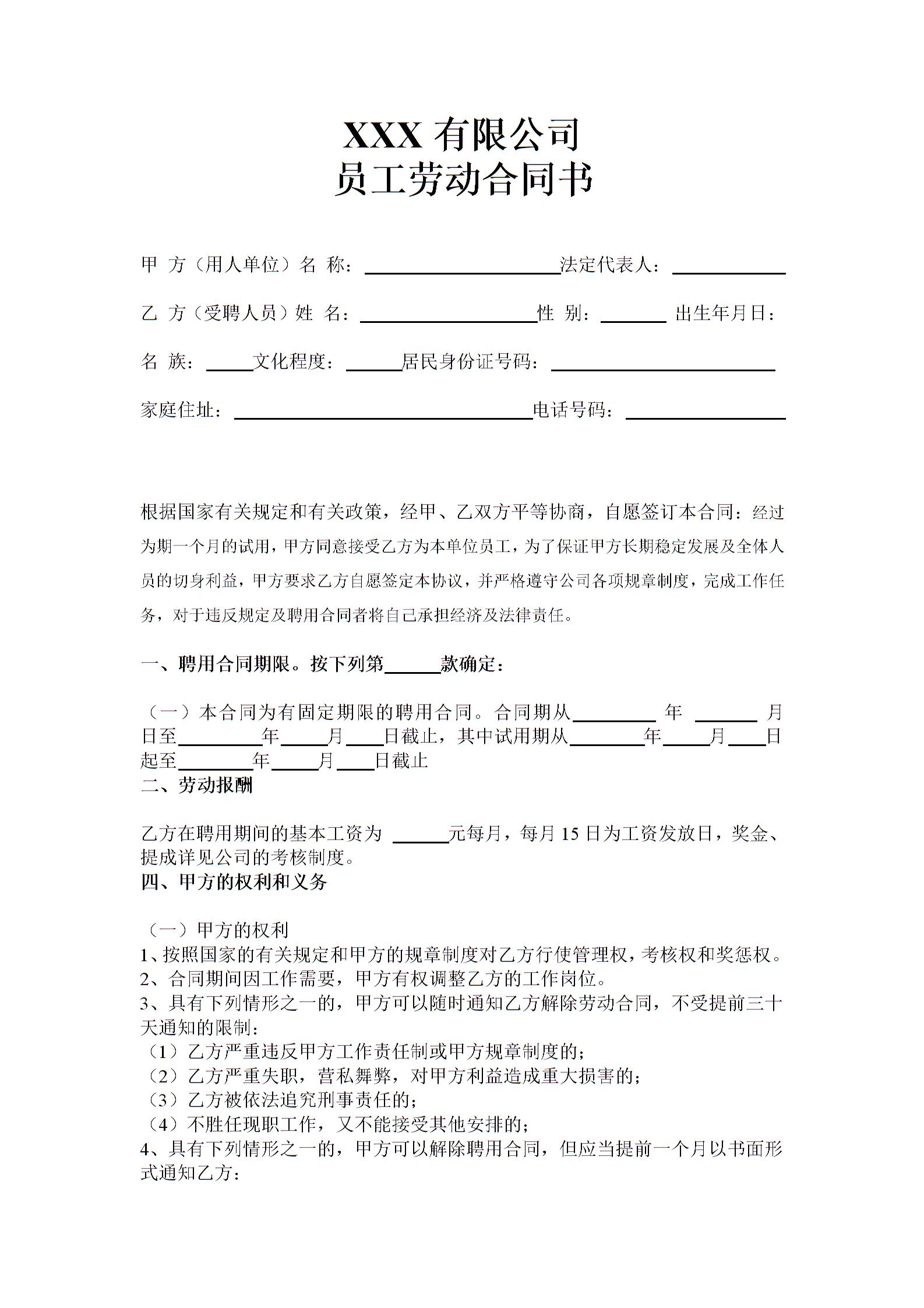 【2017年最新合同模板】福建省劳动合同书范本_格式_样本_样式_协议