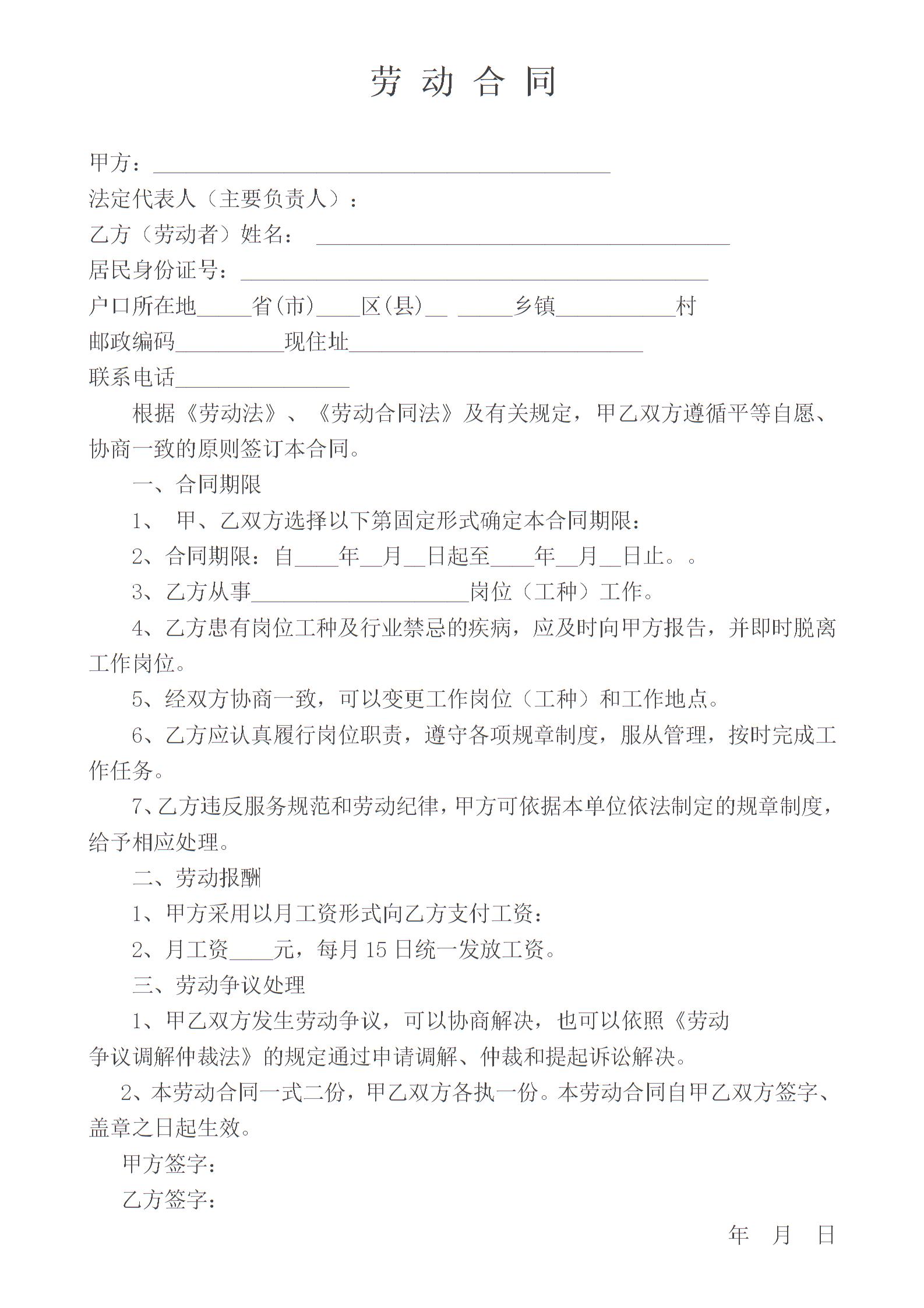 【2017年最新合同模板】福建省劳动合同书范本_格式_样本_样式_协议