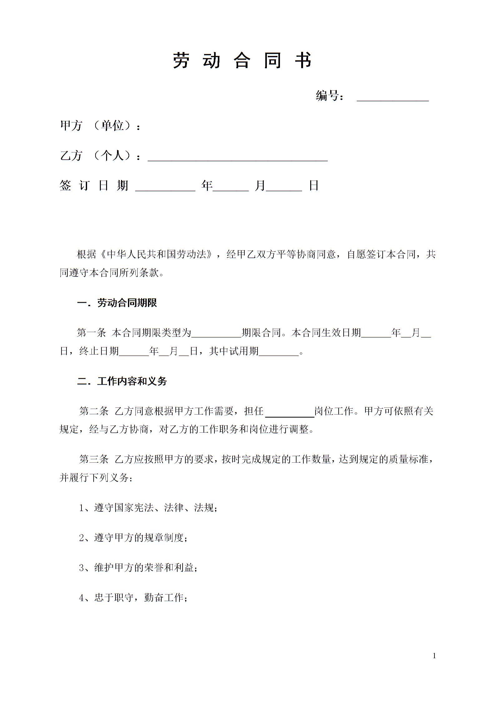 劳动合同书