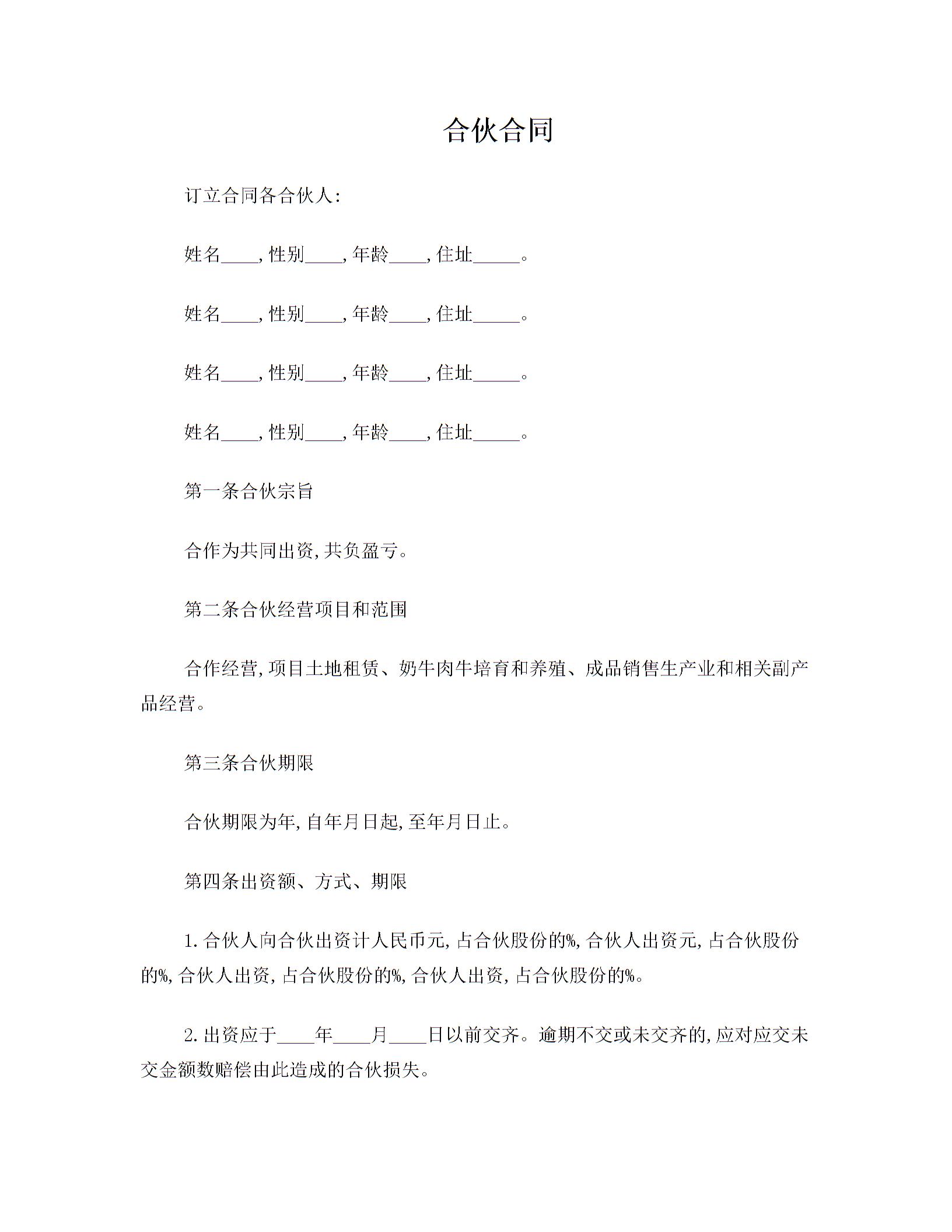 合伙经营合同书