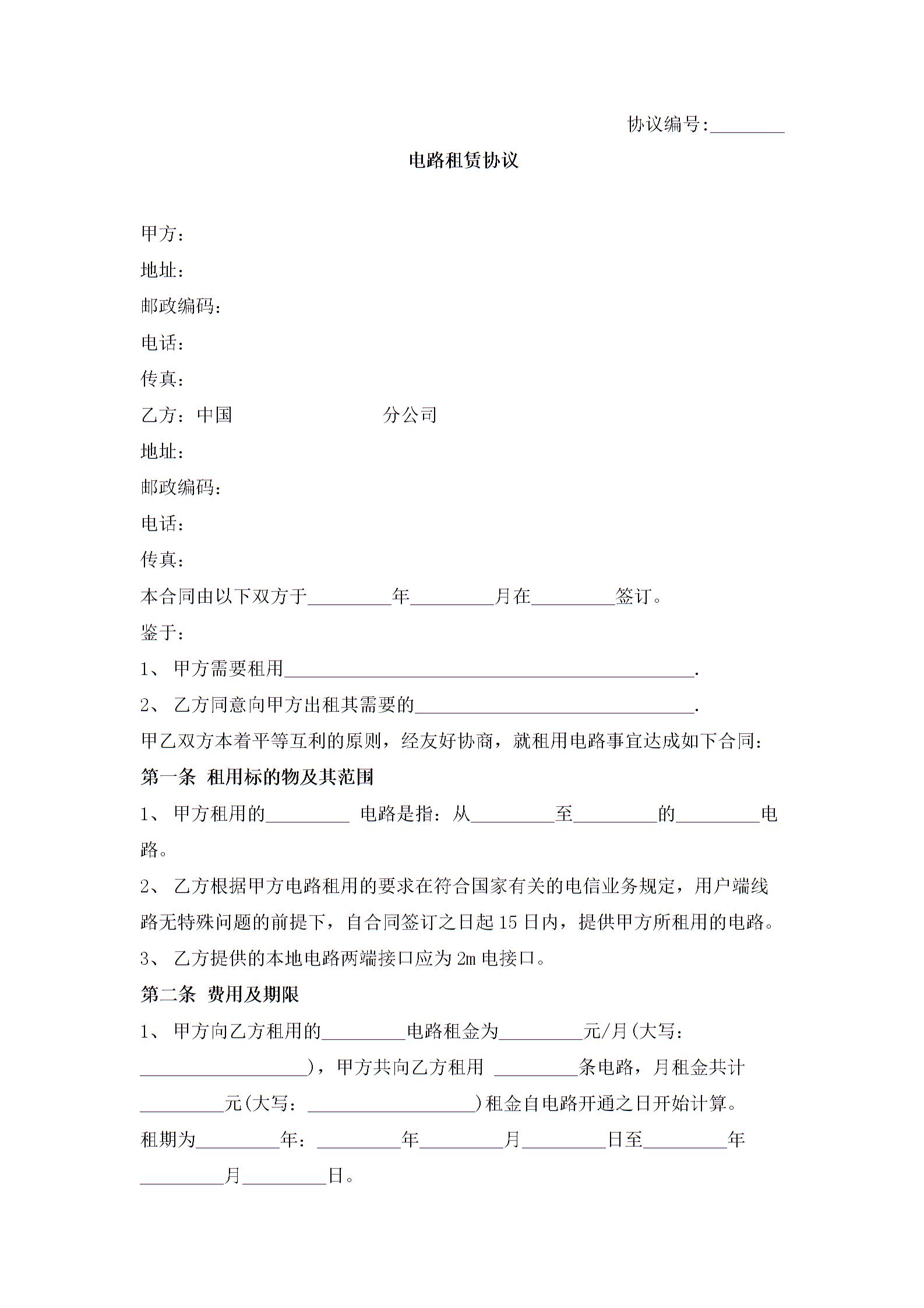 电路租赁合同