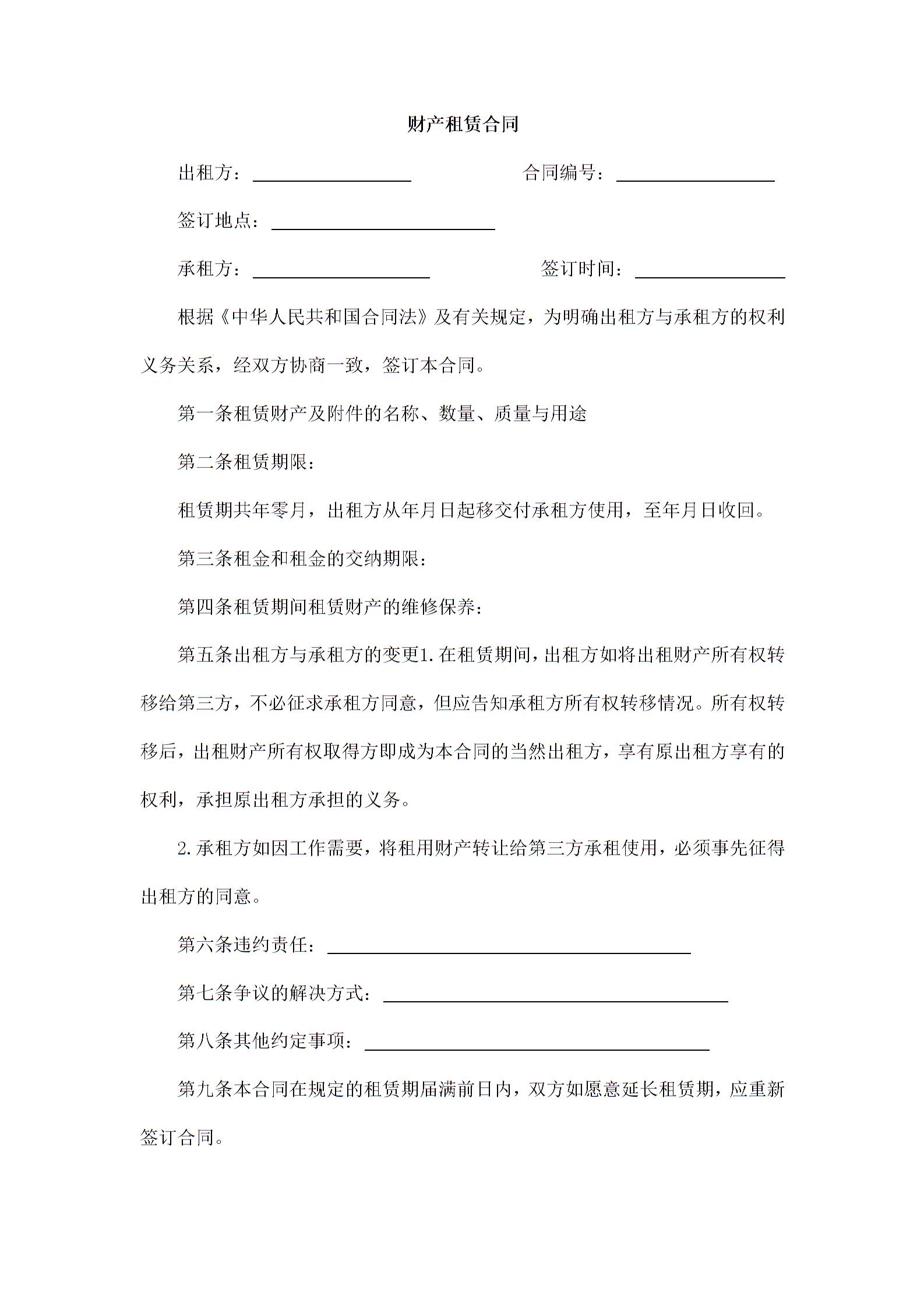 财产租赁合同