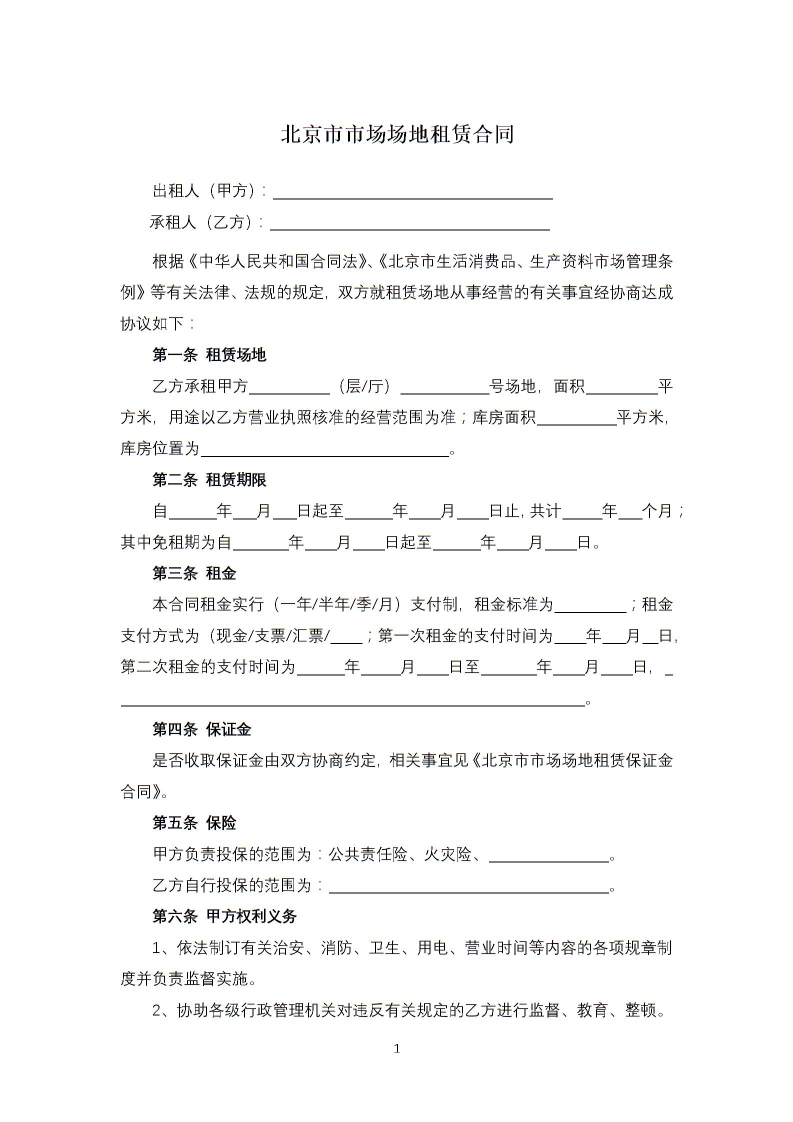 北京市市场场地租赁合同