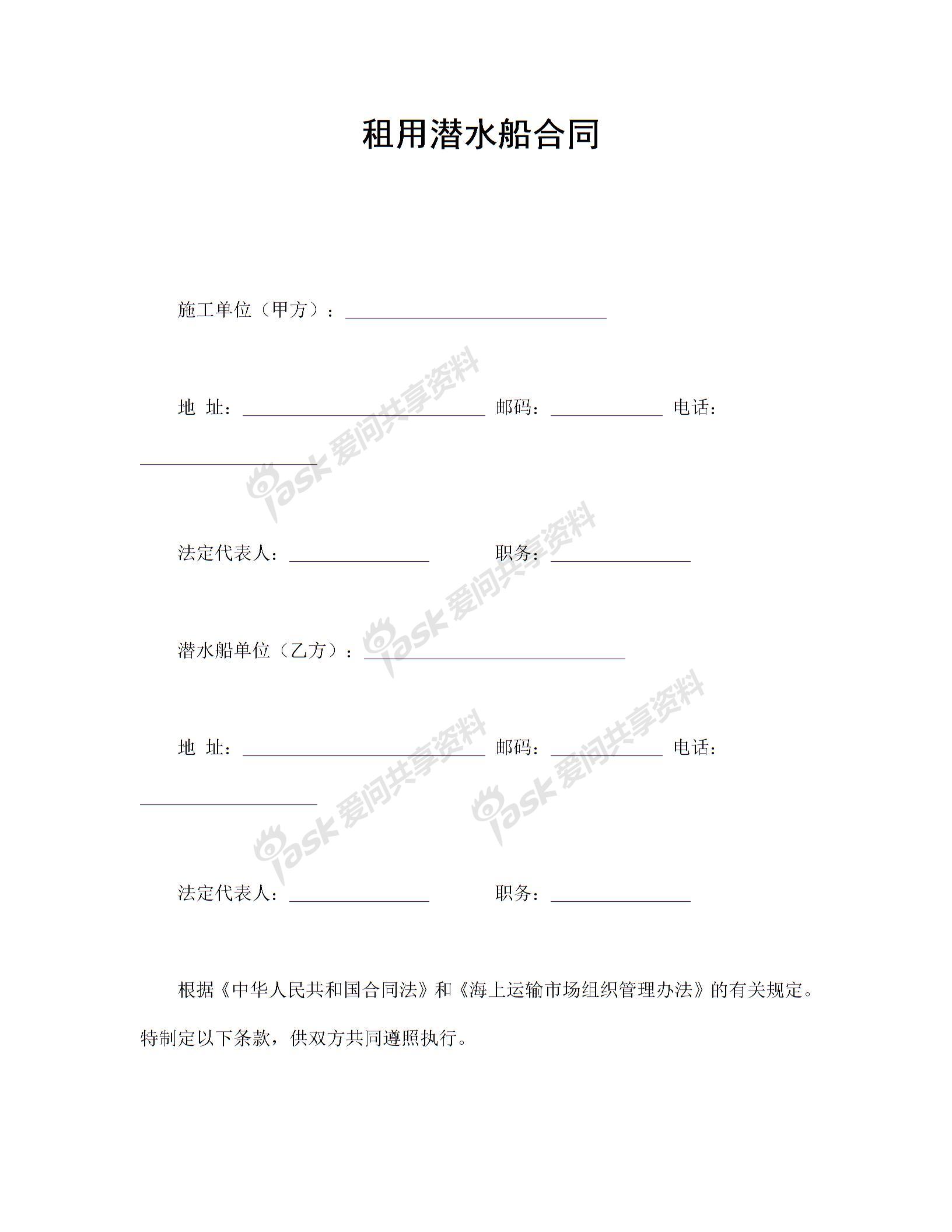 租用潜水船合同