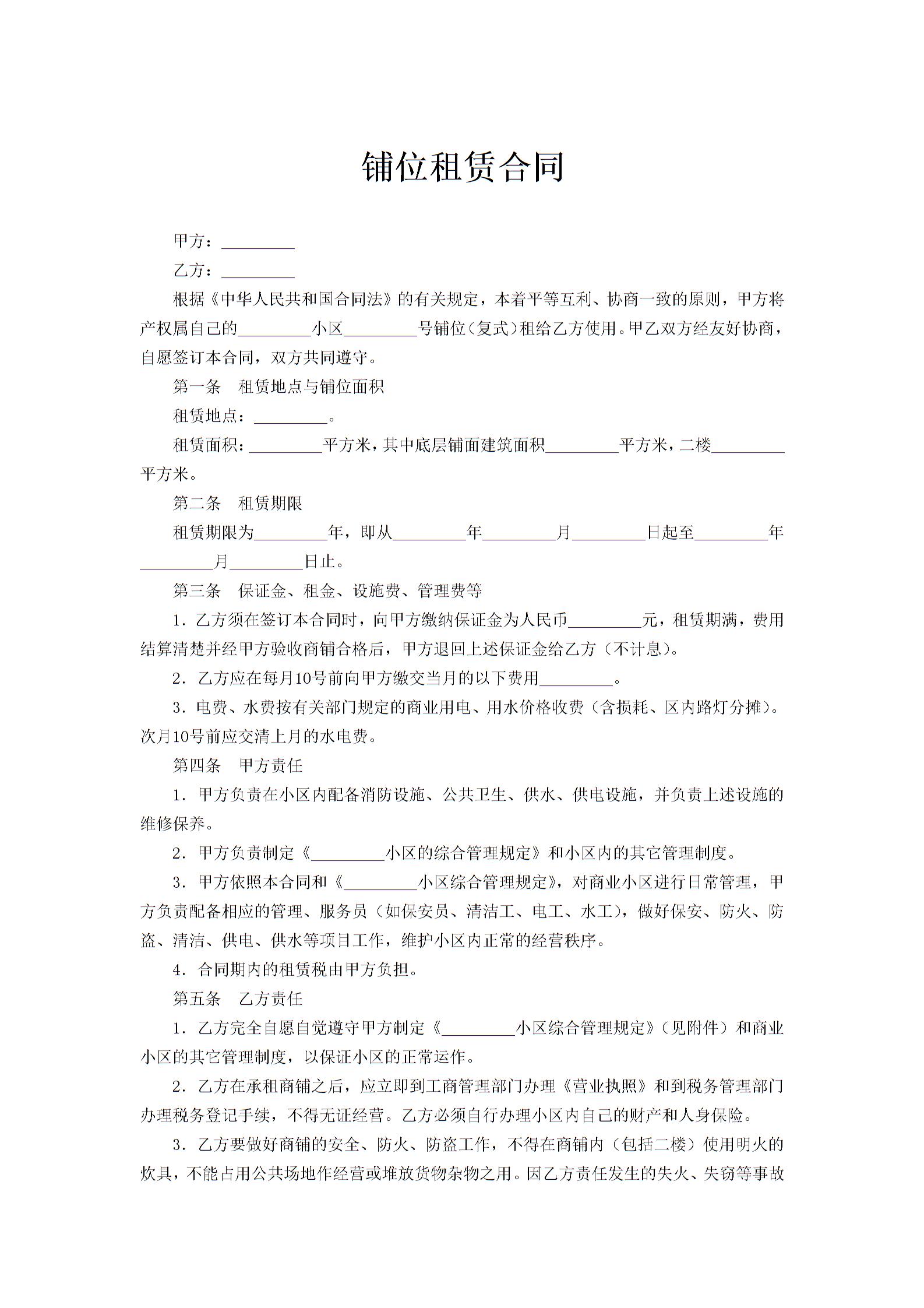 铺位租赁合同范本下载