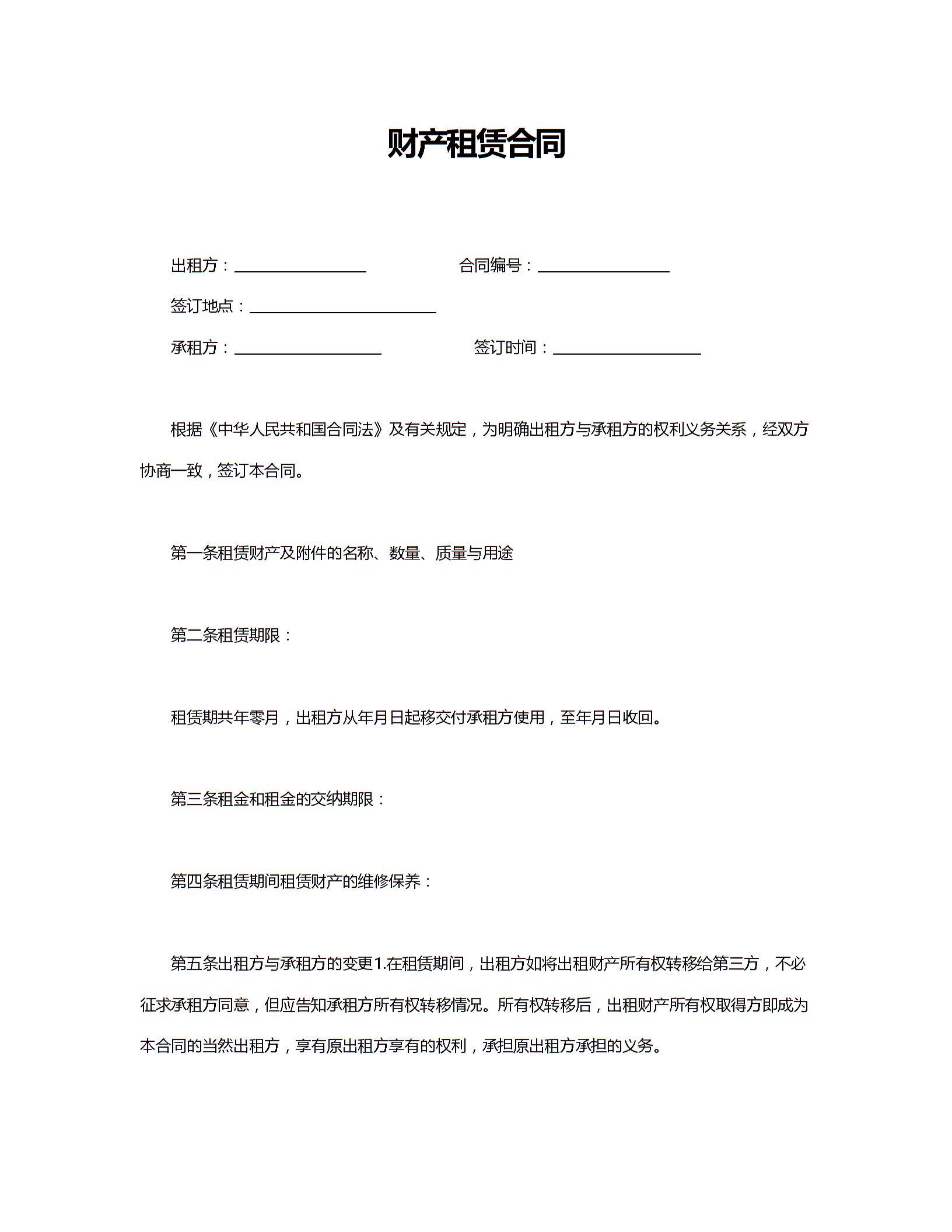 财产租赁合同3
