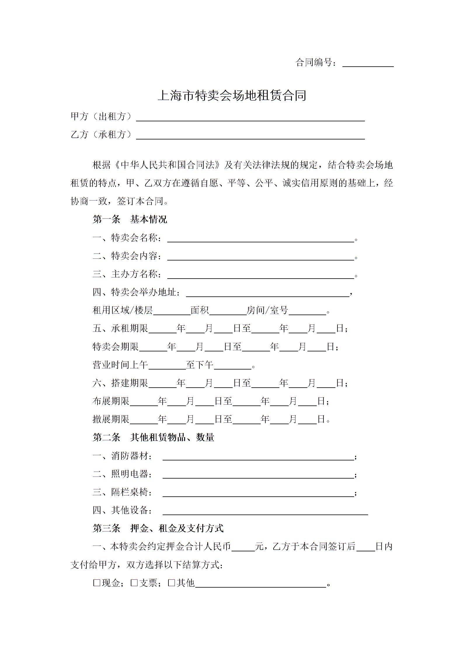 上海市特卖会场地租赁合同