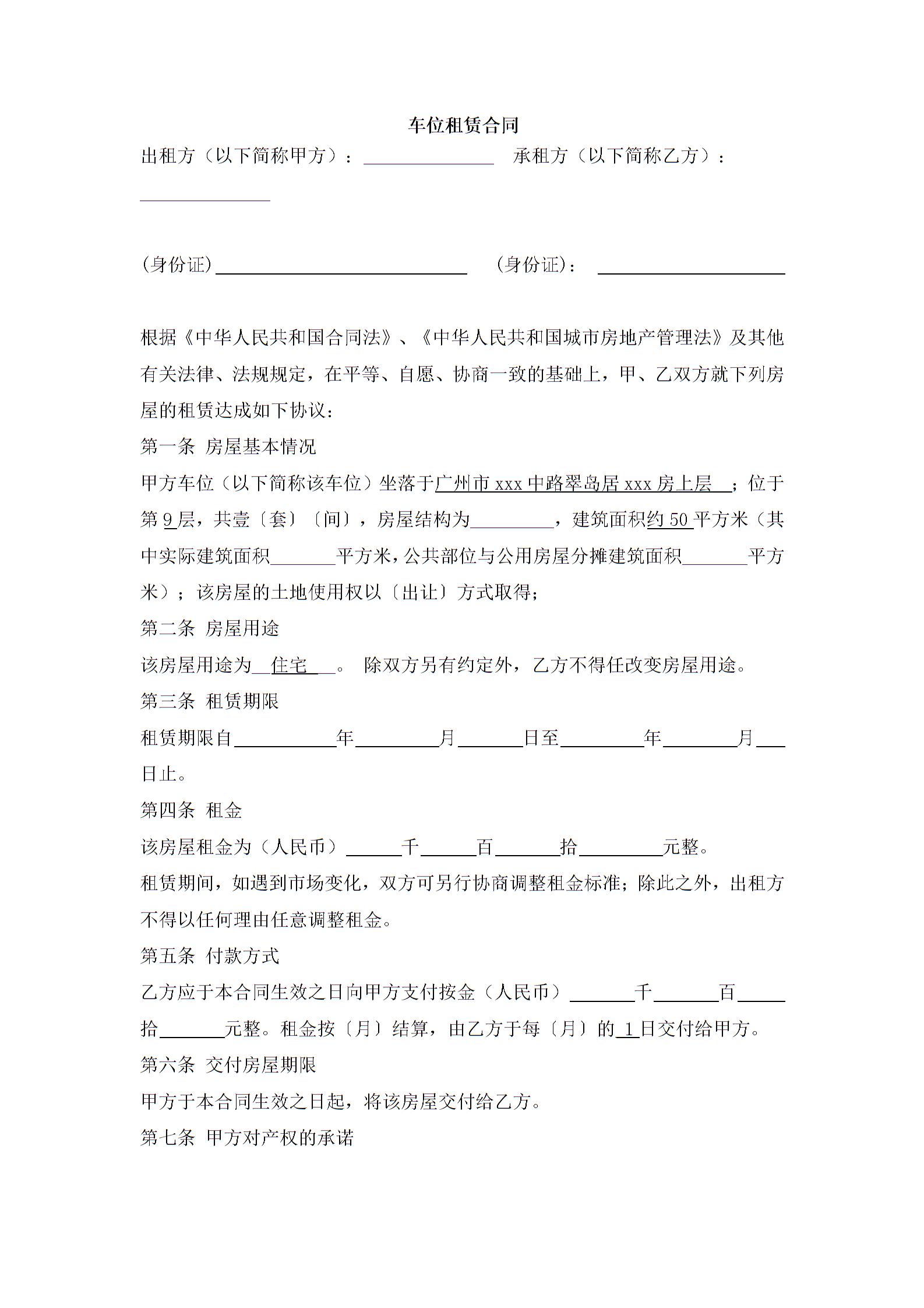 车位租赁合同3