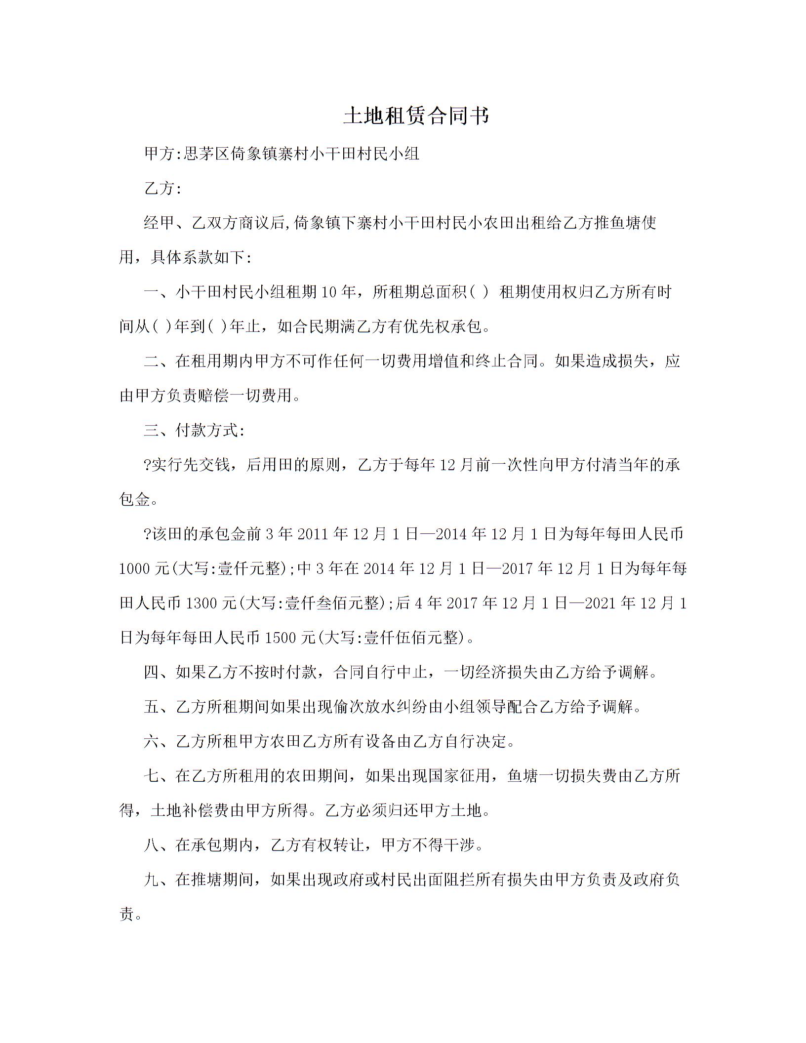 土地租赁合同范文