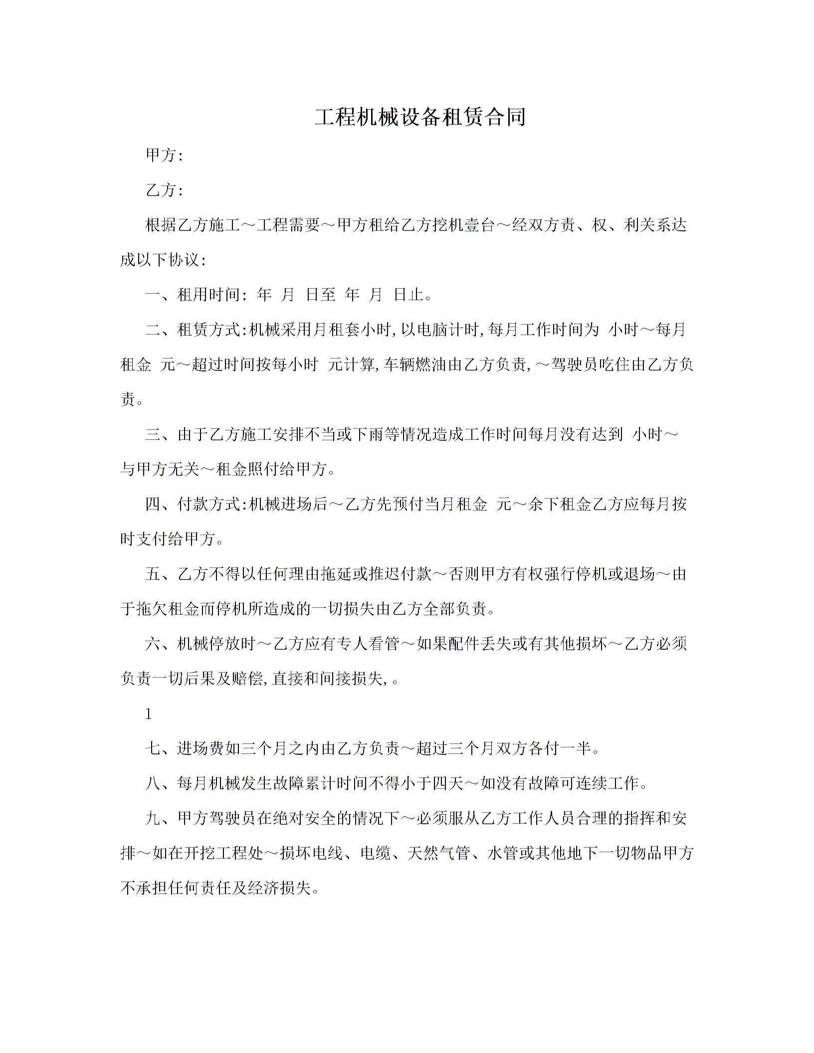 工程机械设备租赁合同