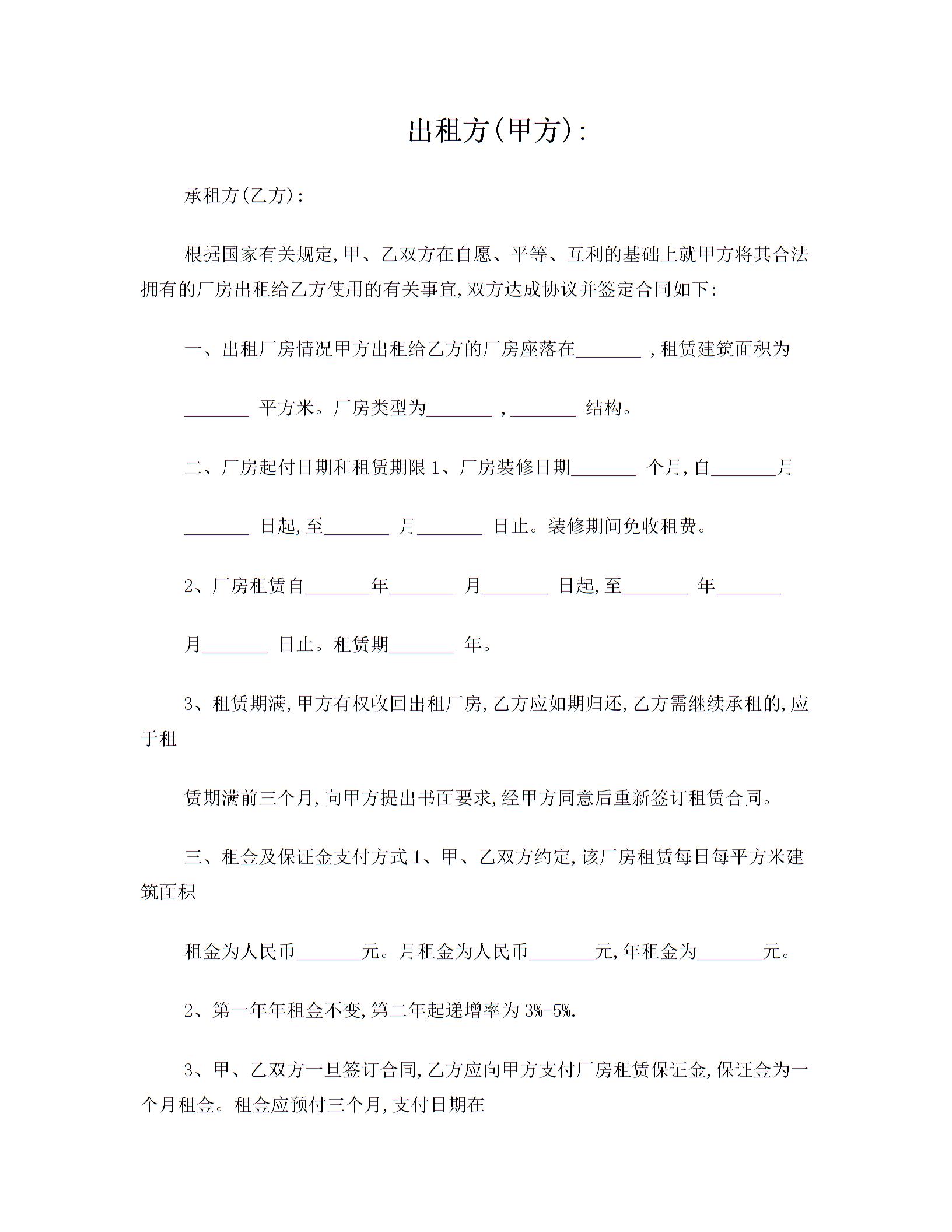 简单厂房租赁合同