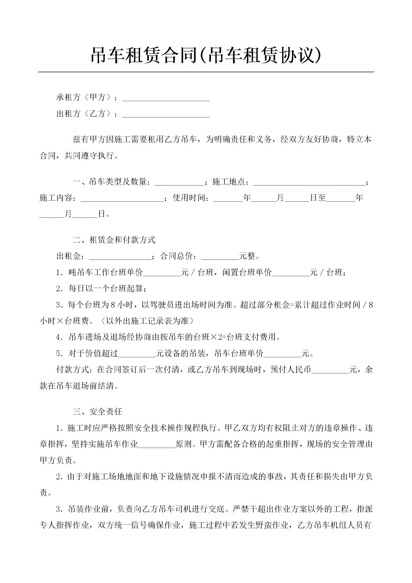 吊车租赁合同(吊车租赁协议)