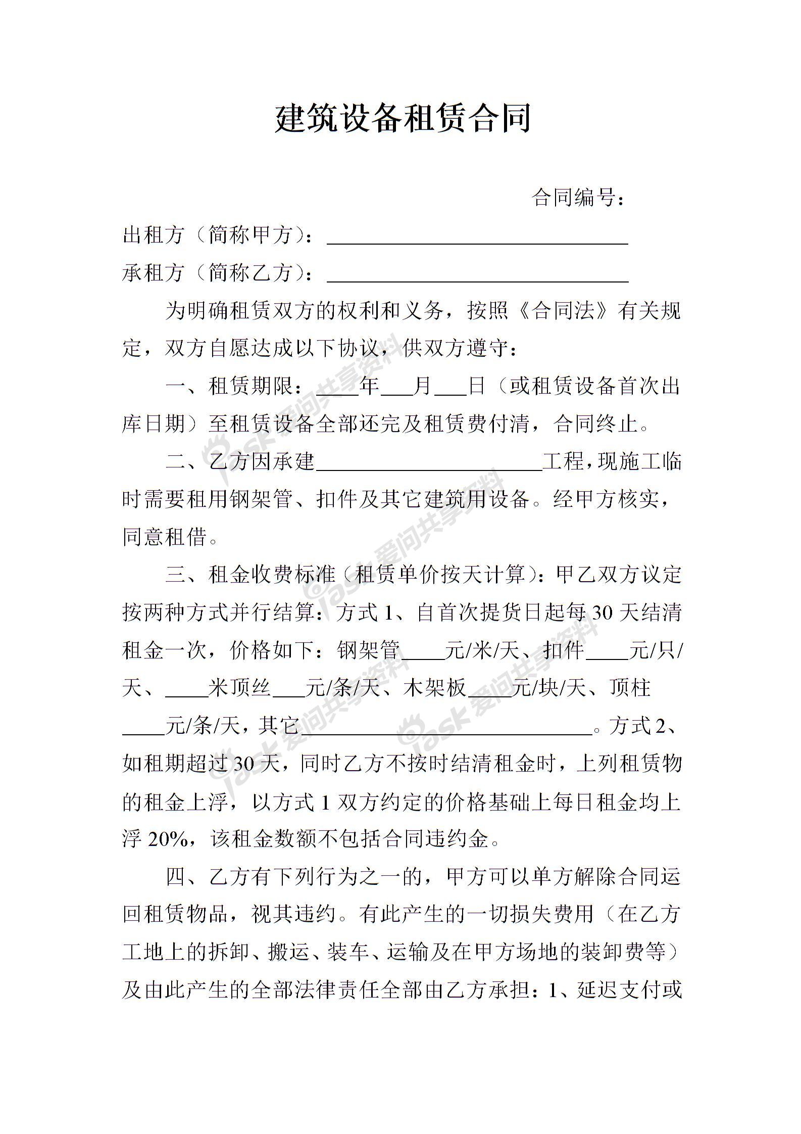 建筑设备租赁合同