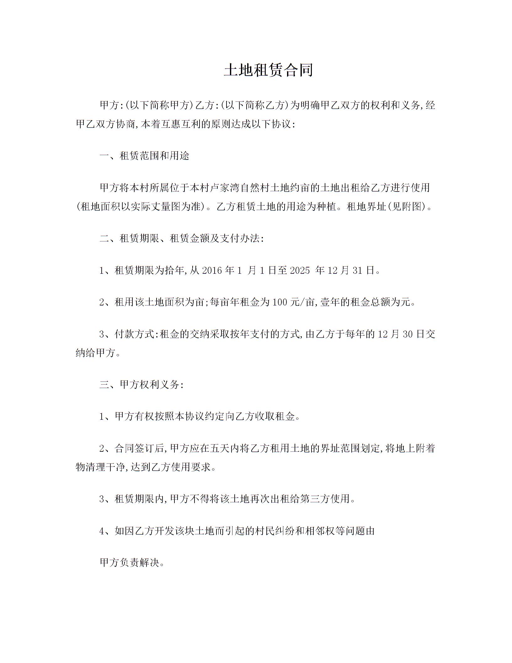 土地租赁合同