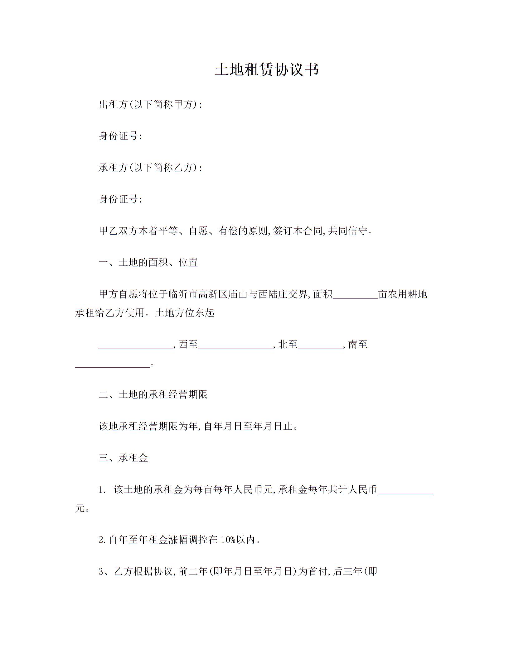 土地租赁协议书