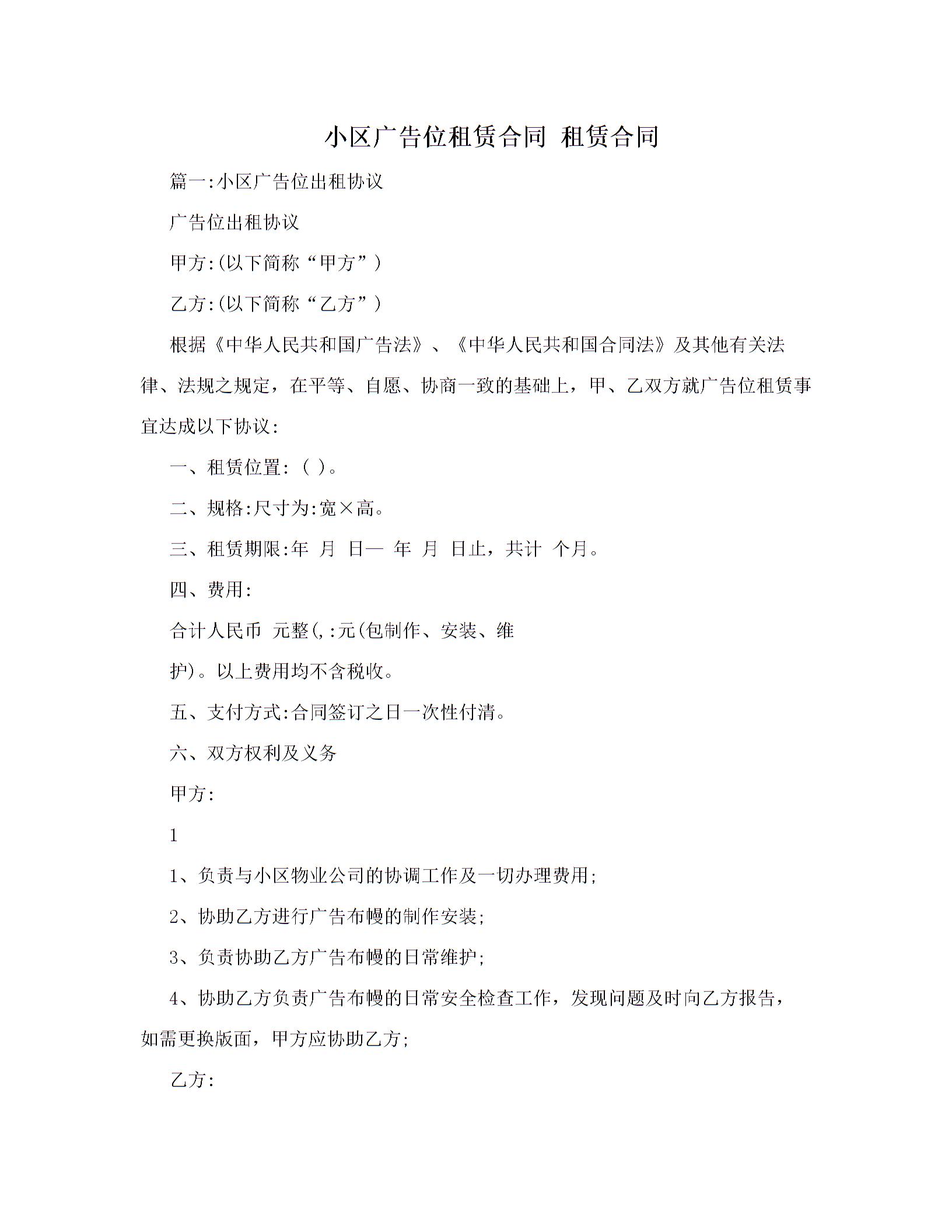 小区广告位租赁合同