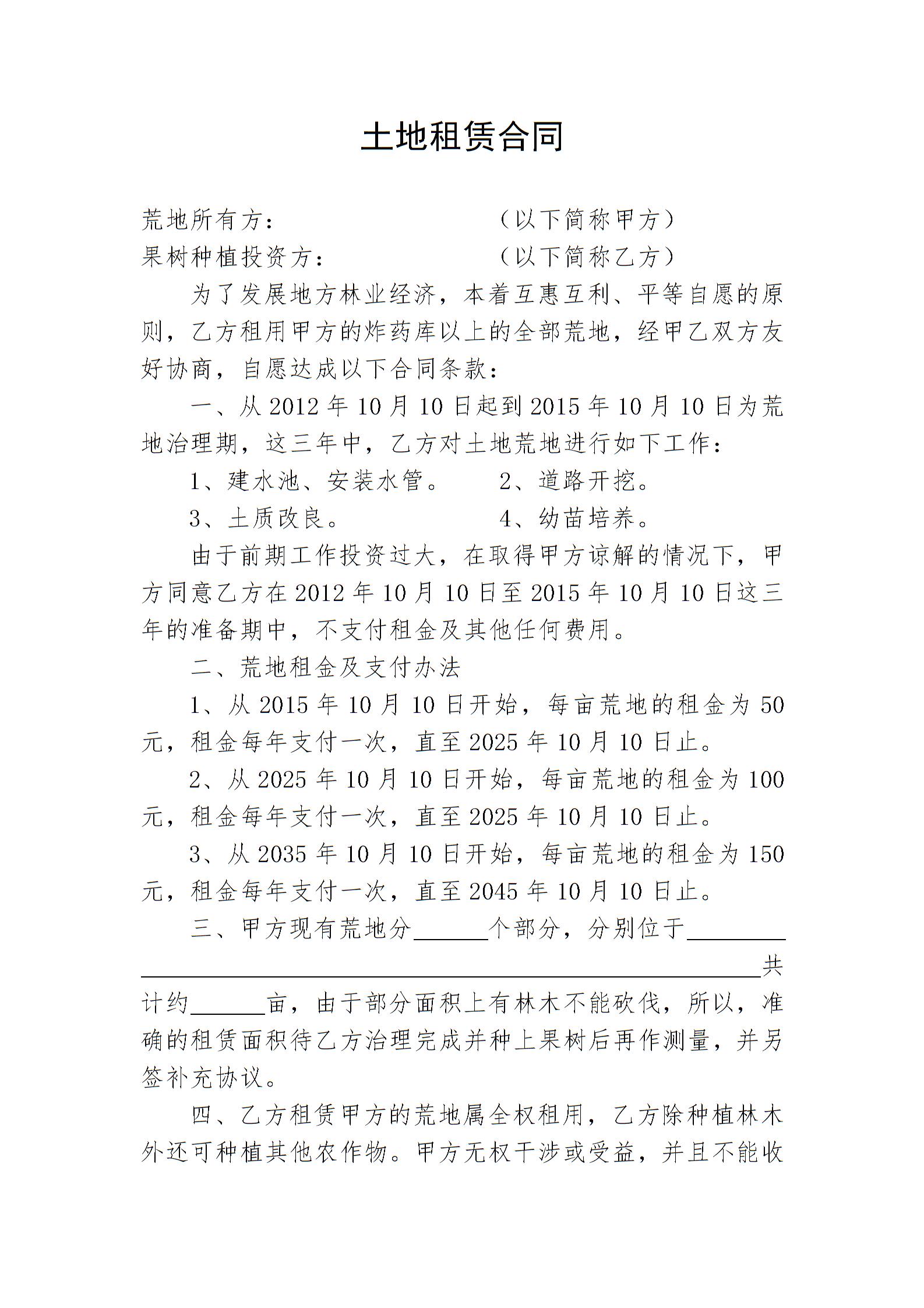 林地租赁合同