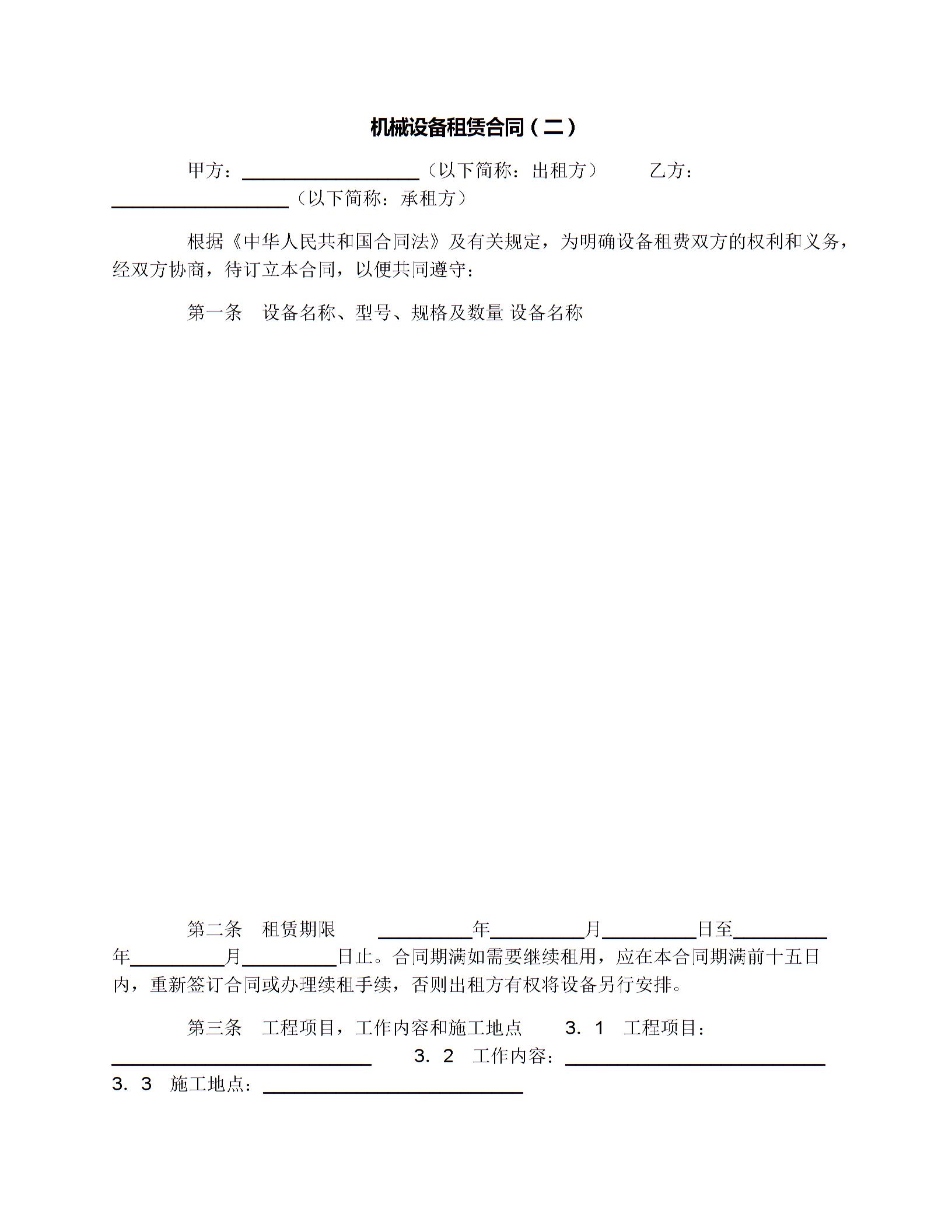 机械设备租赁合同(二)