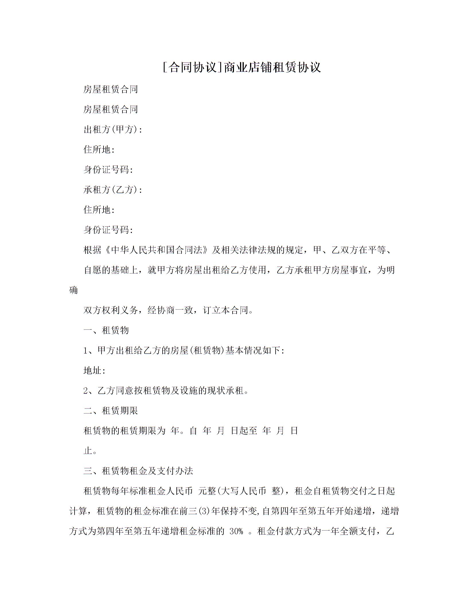[合同协议]商业店铺租赁协议
