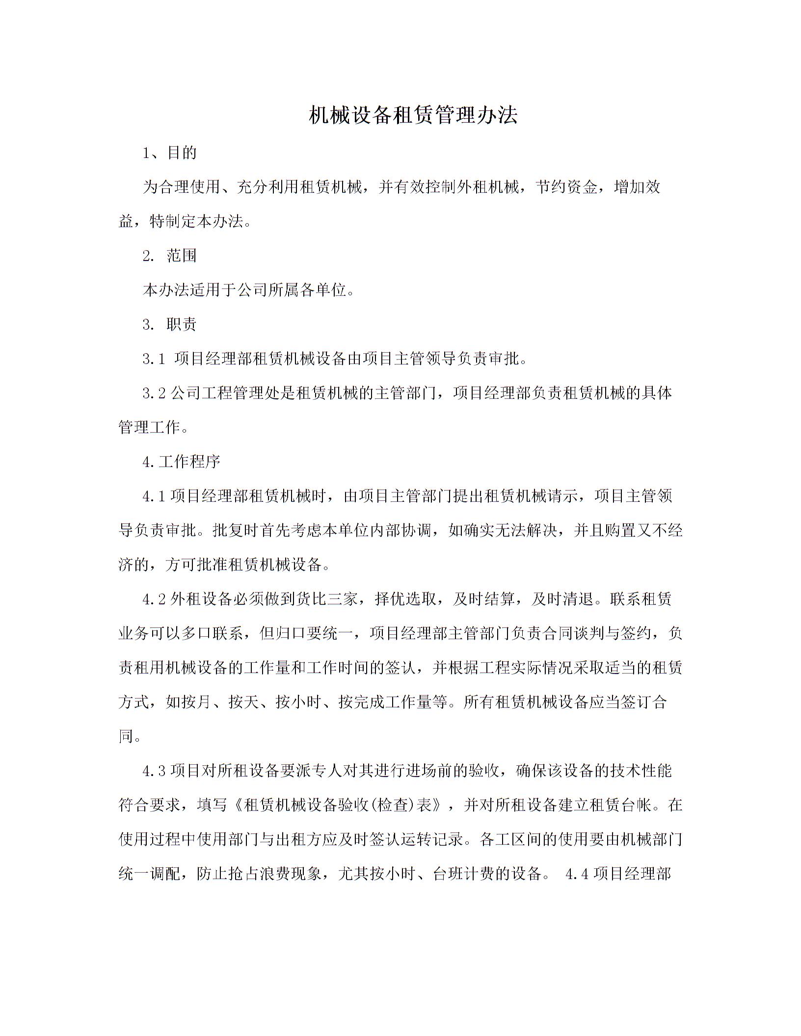 机械设备租赁管理办法