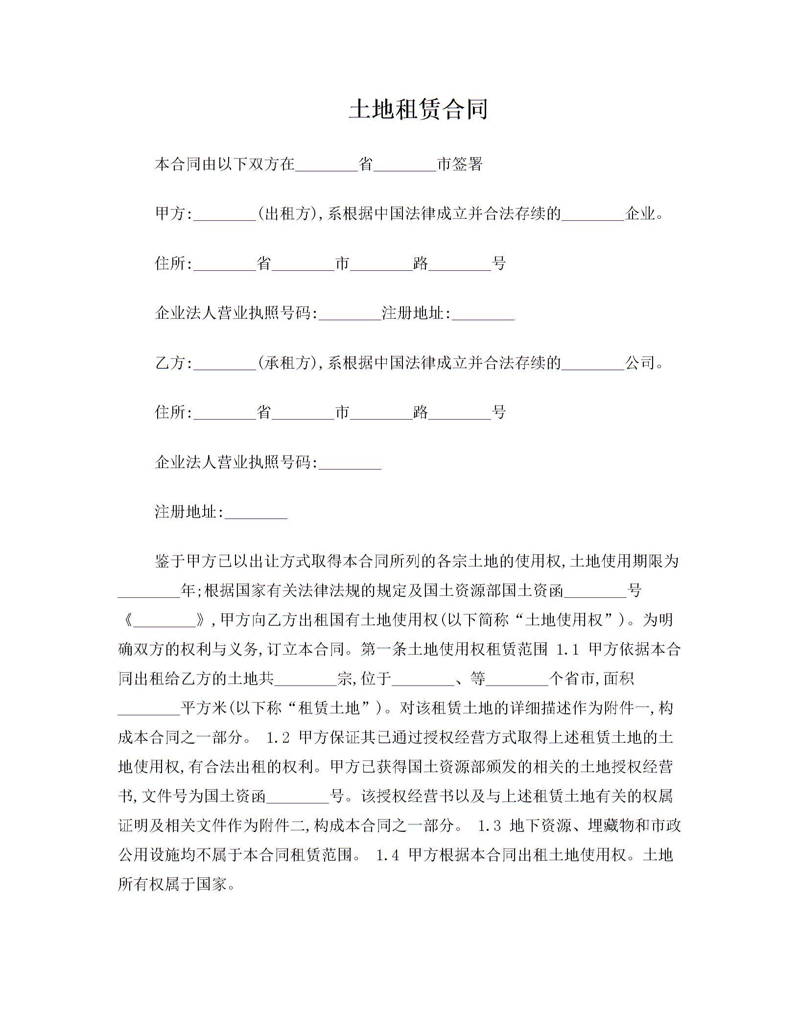土地租赁合同