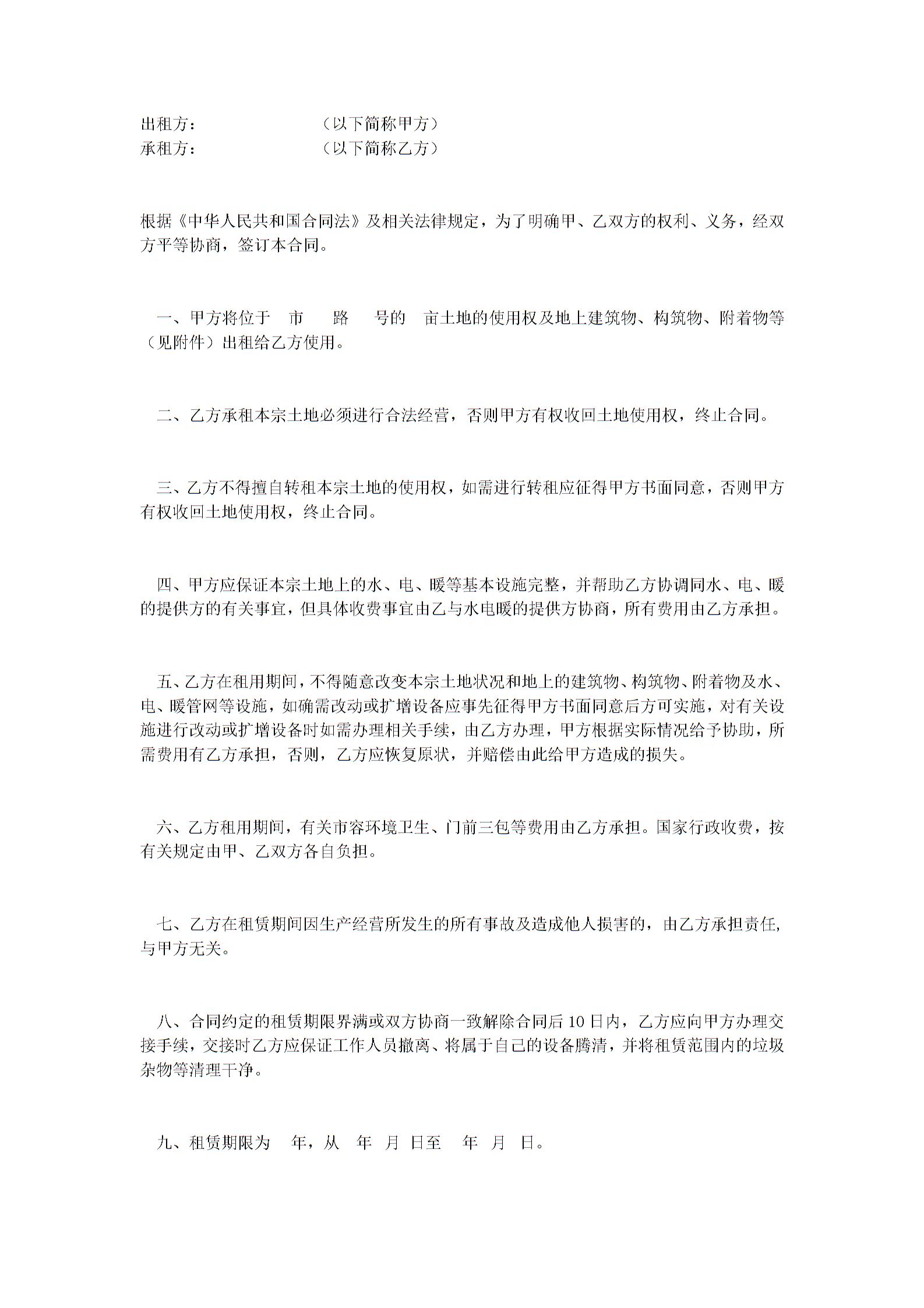 土地租赁合同
