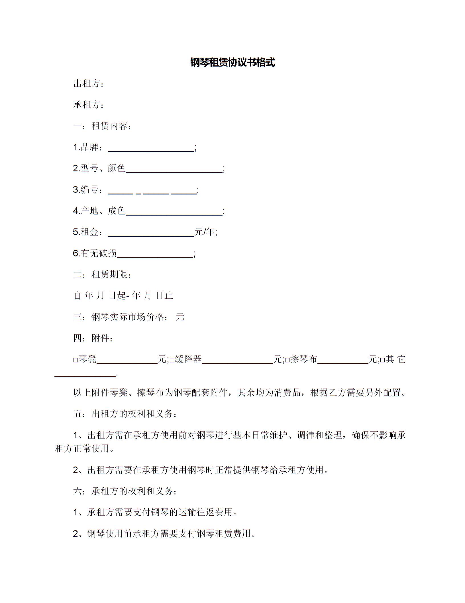 钢琴租赁协议书格式