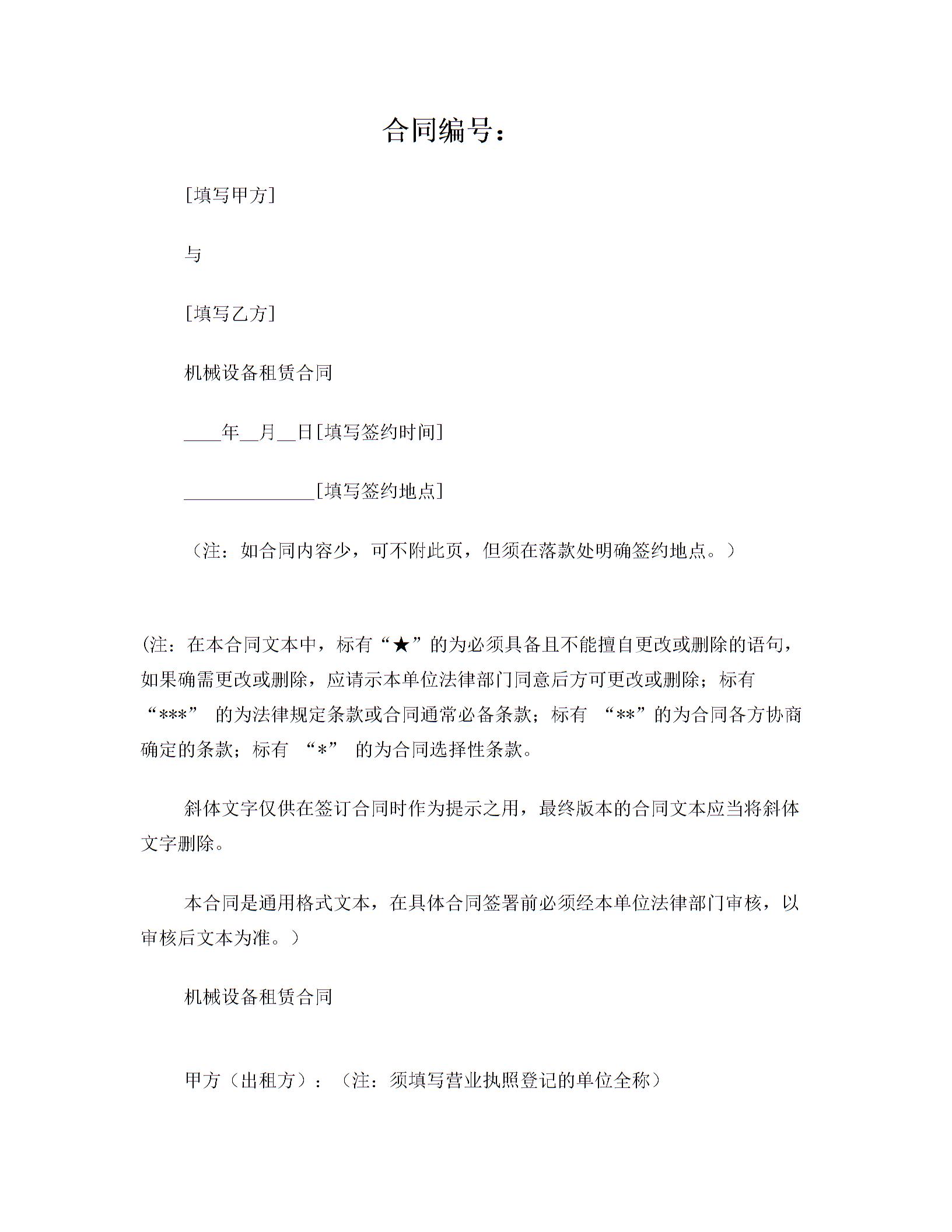 机械设备租赁合同使用说明