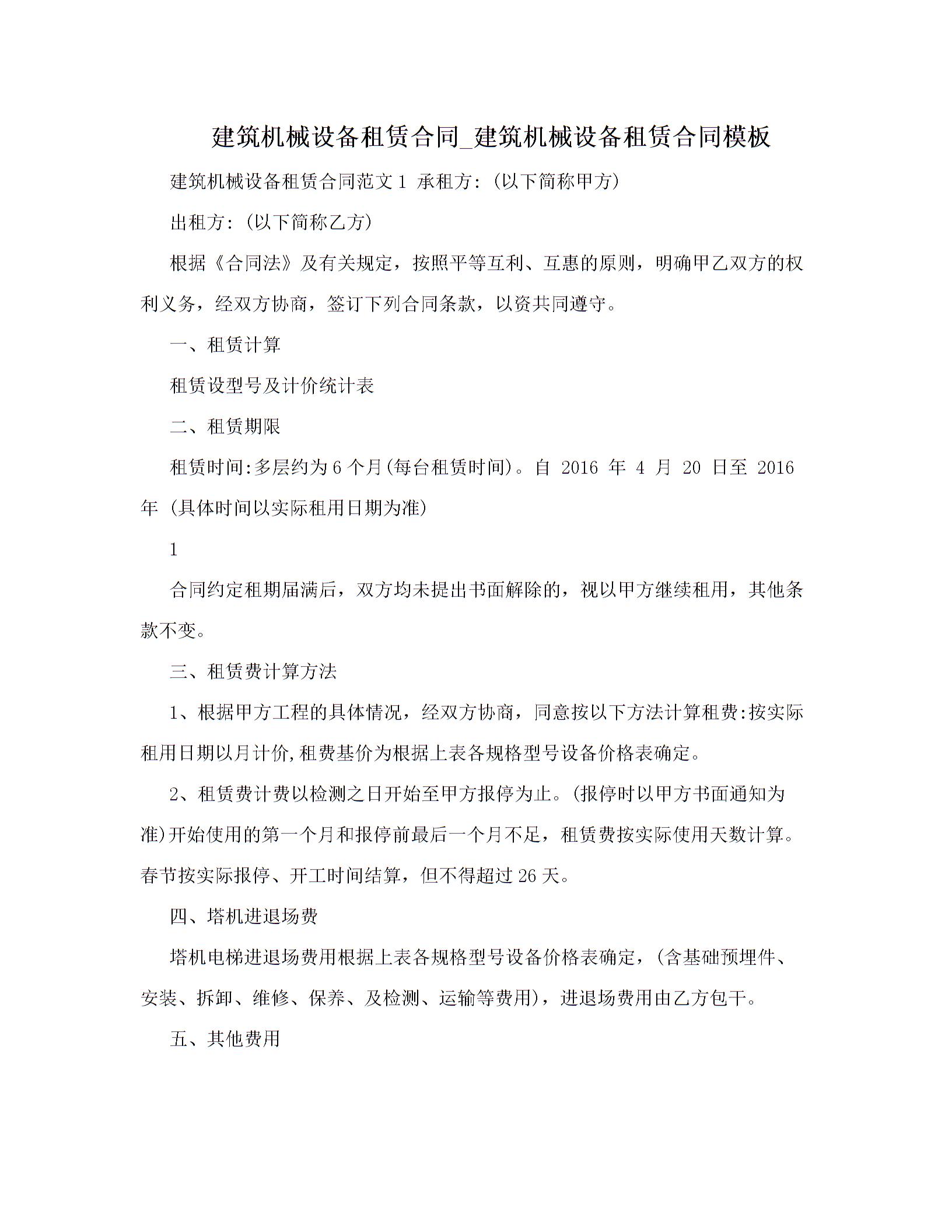 建筑机械设备租赁合同_建筑机械设备租赁合同模板