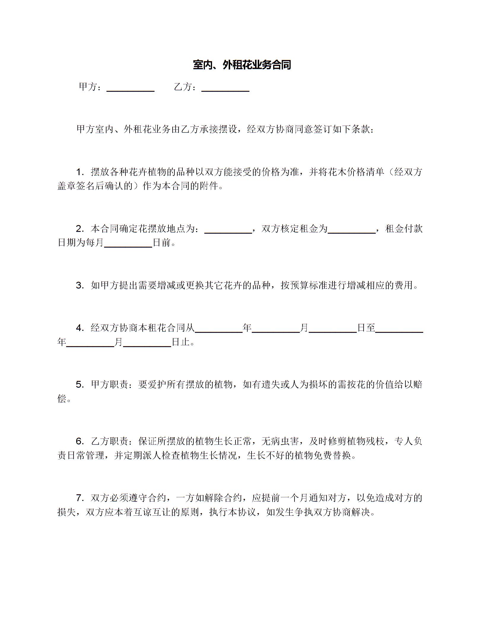 室内、外租花业务合同
