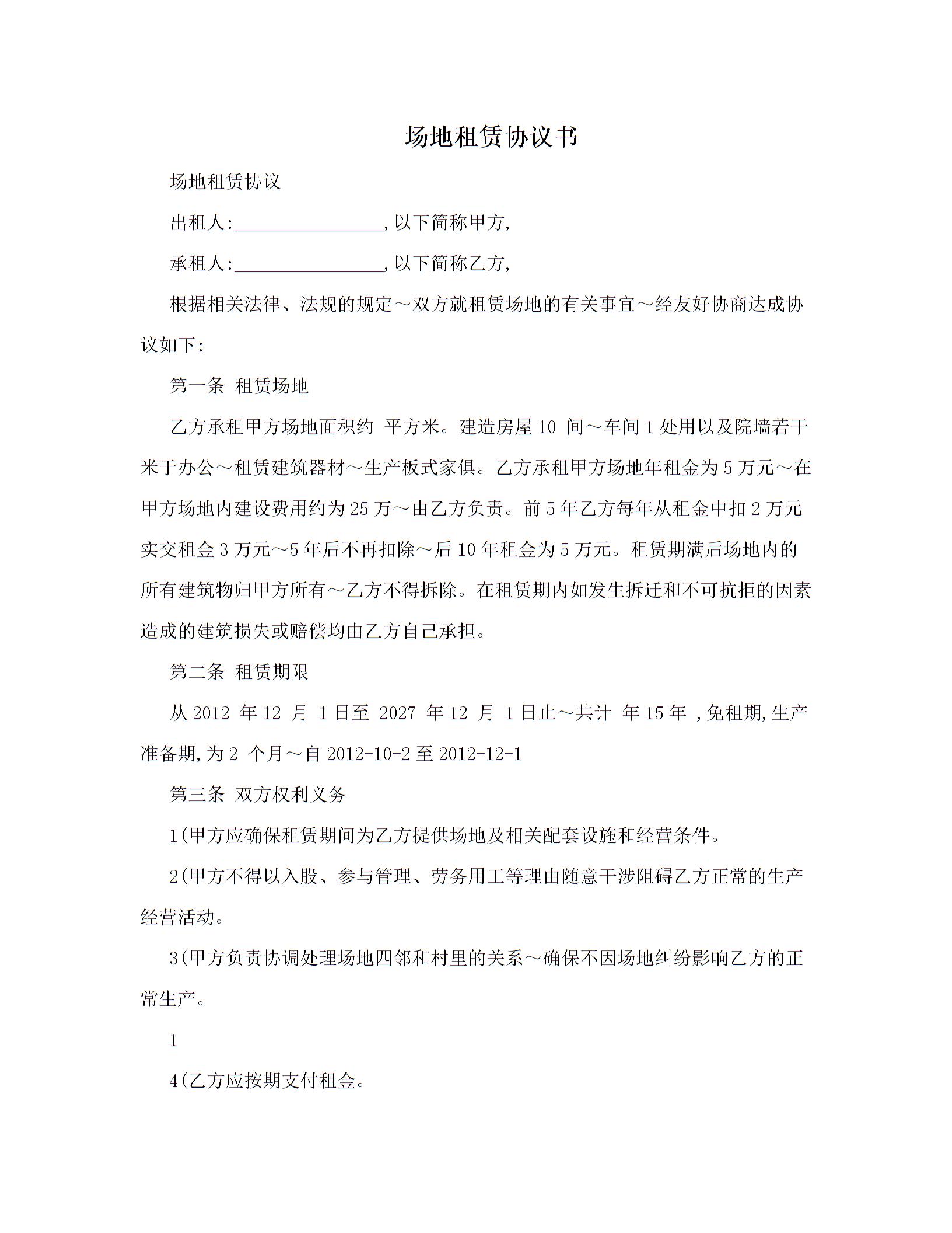 场地租赁协议书